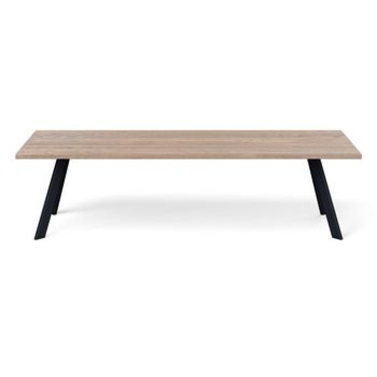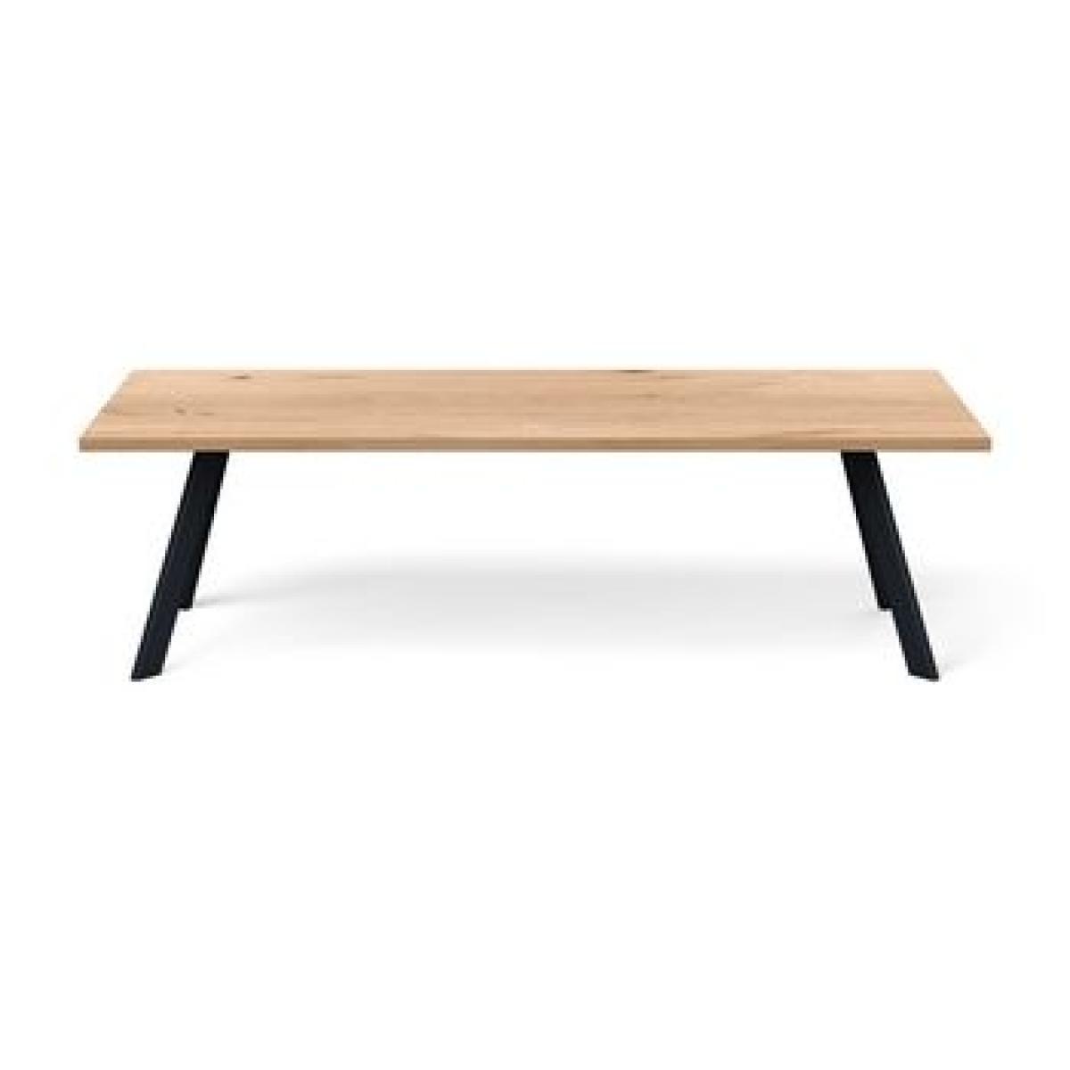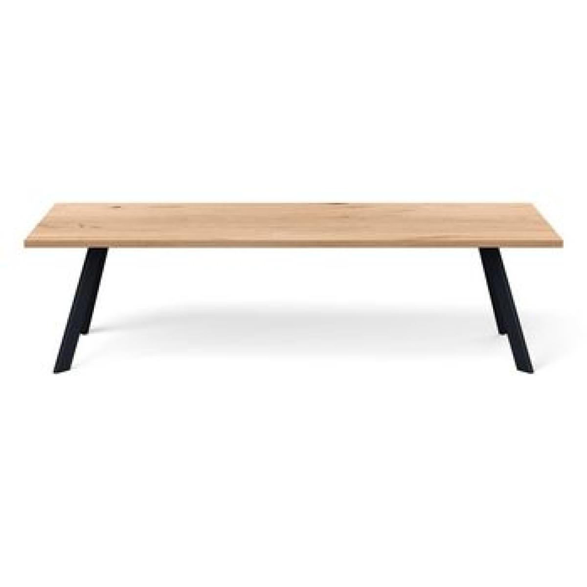 Heal's Designed by You collection of dining tables and benches allows you to create the perfect table for your space. Our tables are made of solid oak or walnut in an oiled finish and are available in seven lengths, two widths, and six different wood finishes and three different edge profiles to create a table that is the perfect fit for your home. Grain, knots and cracks are a natural property of all solid wood and add beauty and interest. Each piece is unique and will have a different grain pattern and variances in shading and colour. This is the charm of solid wood and is a different look to veneers which are more uniform. The oiled finish will enable the table to last a lifetime with a little love & care. The Madrid table has slim splayed metal legs for a minimal sleek look, perfect for a contemporary setting.