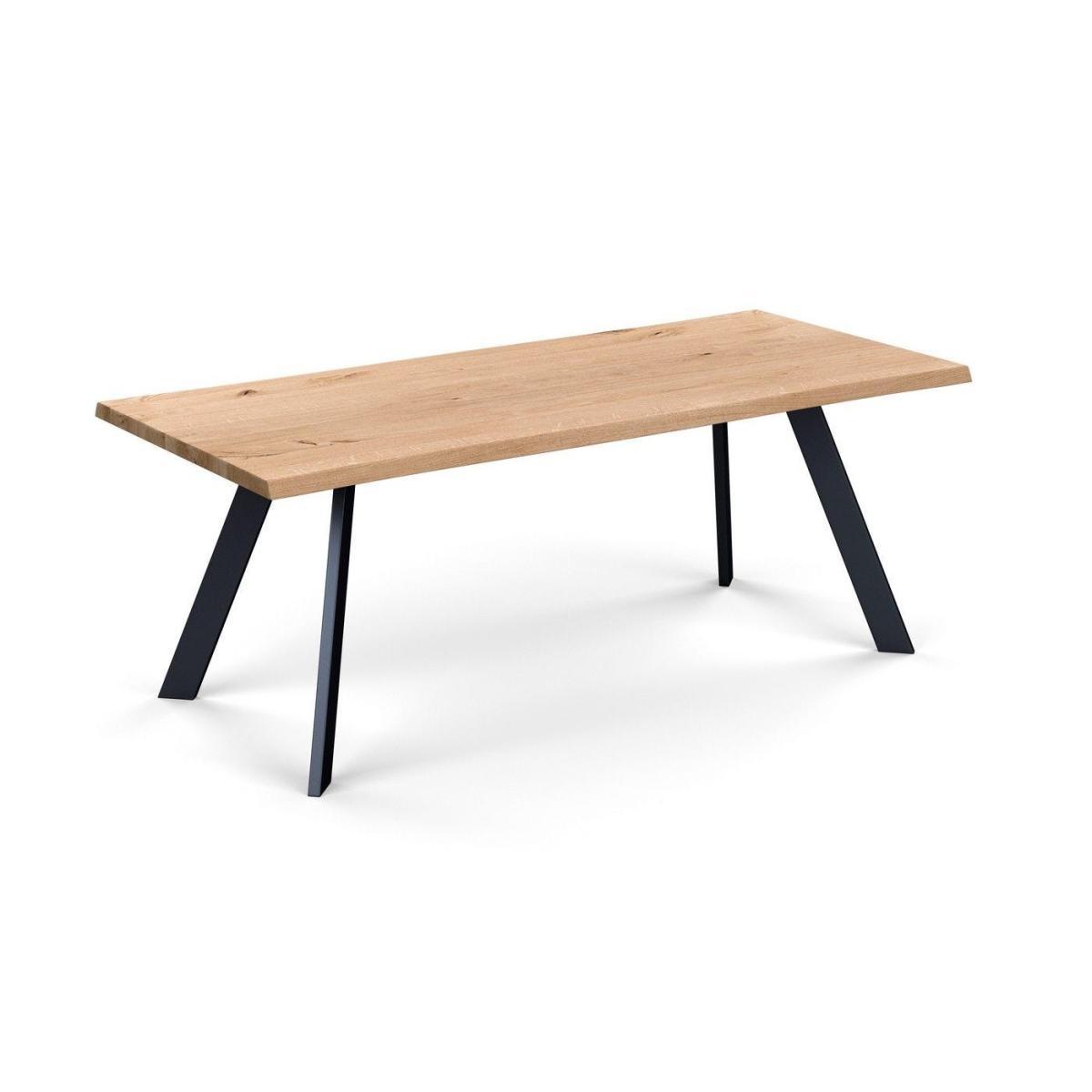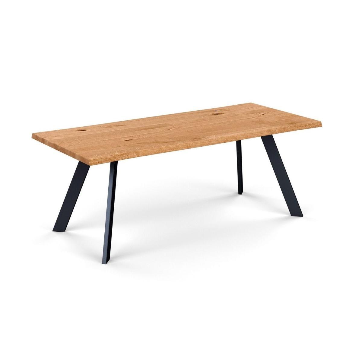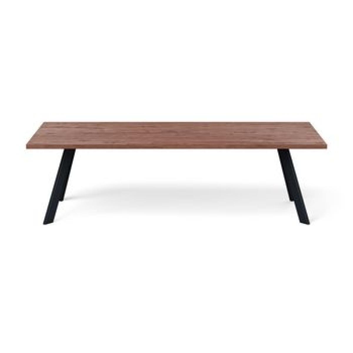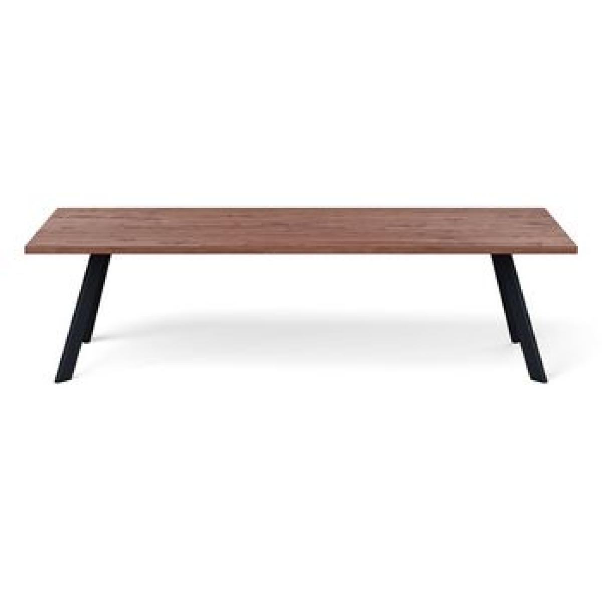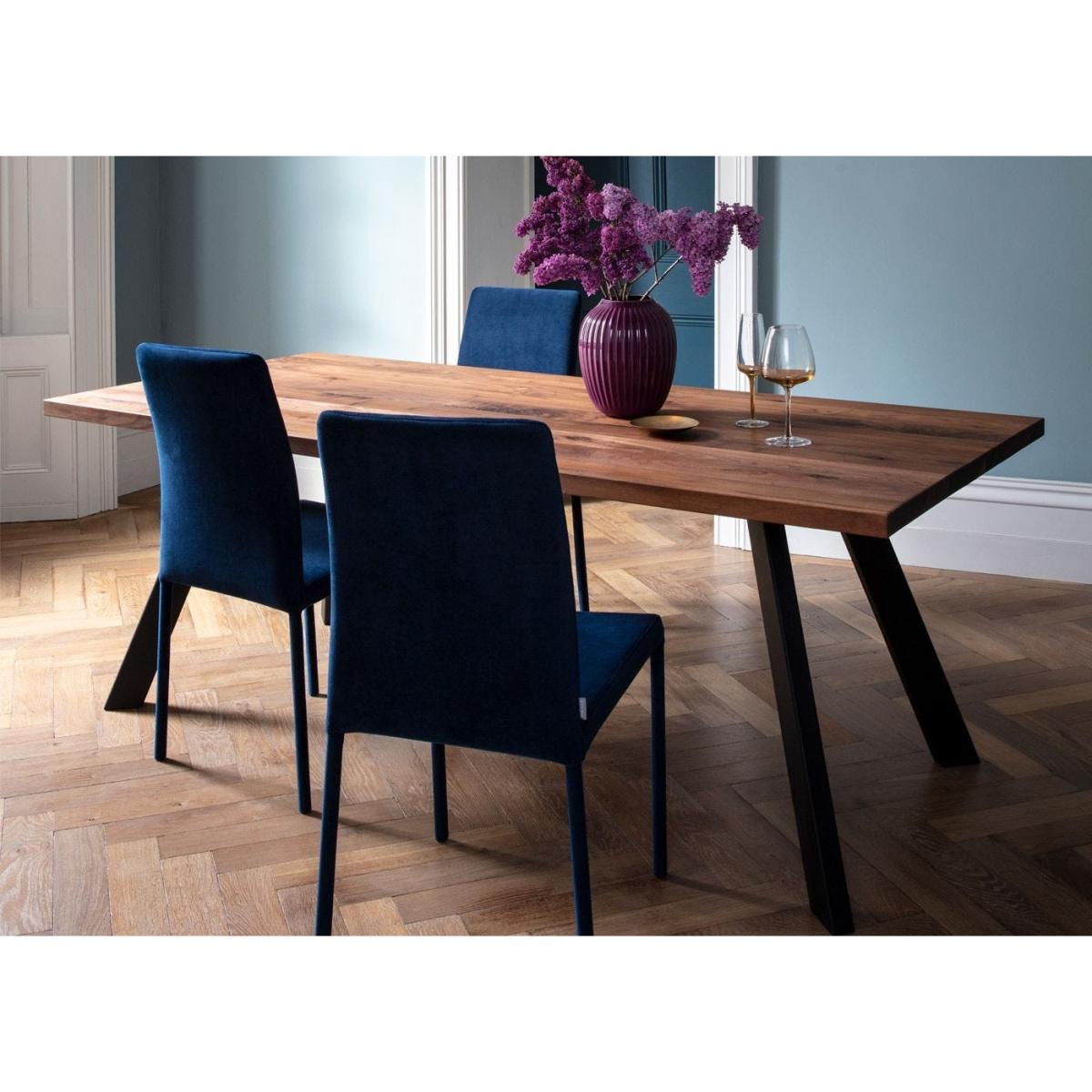 Heal's Designed by You collection of dining tables and benches allows you to create the perfect table for your space. Our tables are made of solid oak or walnut in an oiled finish and are available in seven lengths, two widths, and six different wood finishes and three different edge profiles to create a table that is the perfect fit for your home. Grain, knots and cracks are a natural property of all solid wood and add beauty and interest. Each piece is unique and will have a different grain pattern and variances in shading and colour. This is the charm of solid wood and is a different look to veneers which are more uniform. The oiled finish will enable the table to last a lifetime with a little love & care. The Madrid table has slim splayed metal legs for a minimal sleek look, perfect for a contemporary setting.
