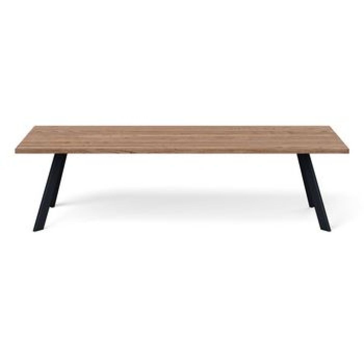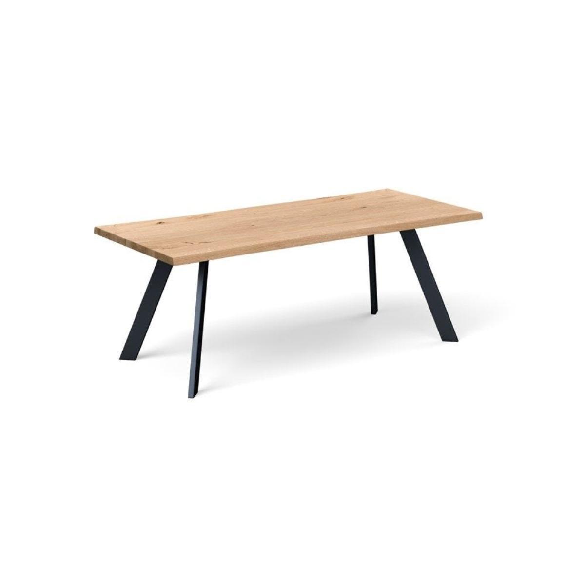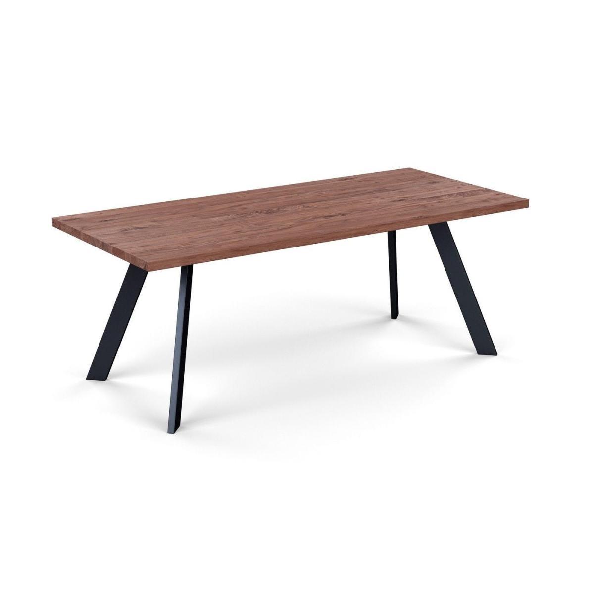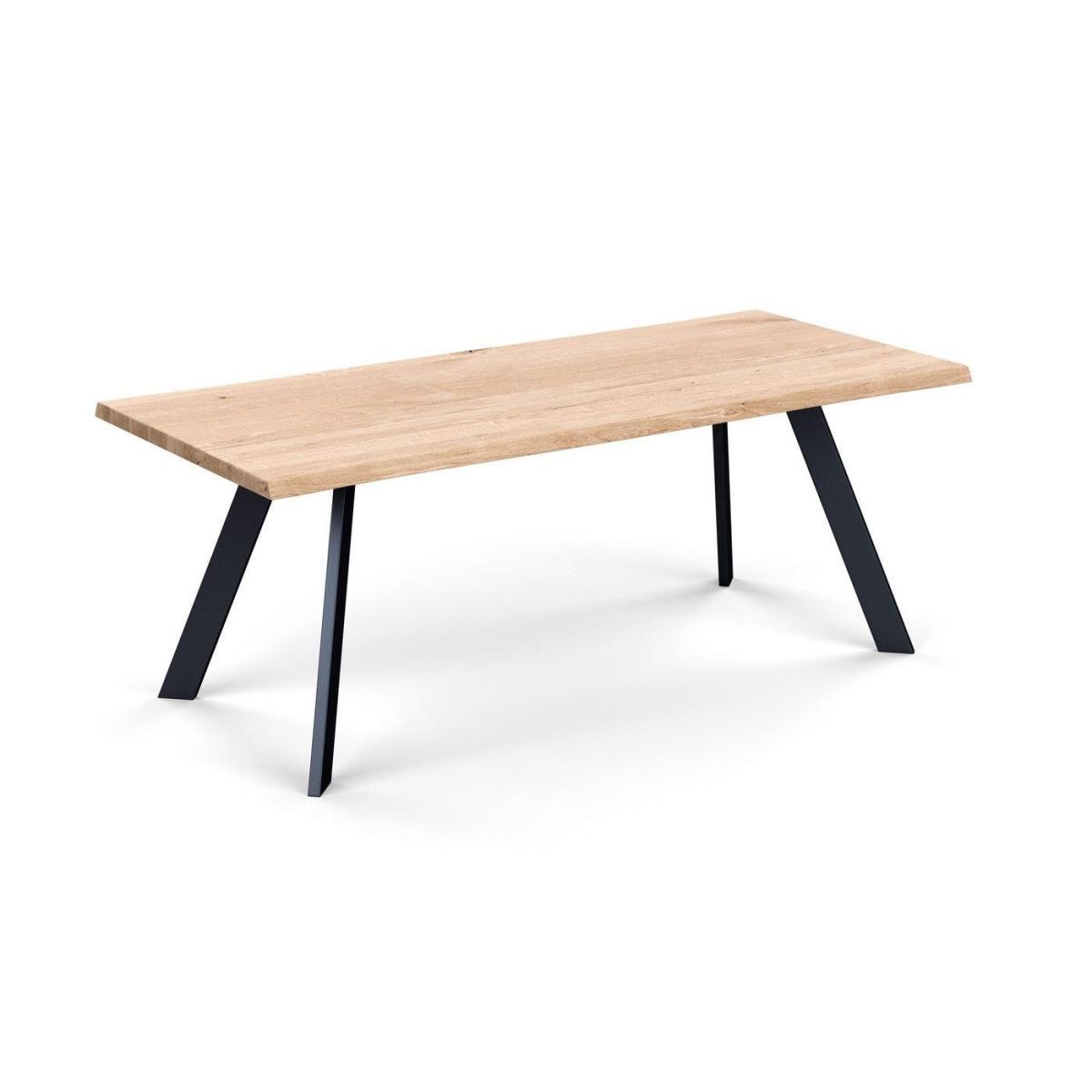 Heal's Designed by You collection of dining tables and benches allows you to create the perfect table for your space. Our tables are made of solid oak or walnut in an oiled finish and are available in seven lengths, two widths, and six different wood finishes and three different edge profiles to create a table that is the perfect fit for your home. Grain, knots and cracks are a natural property of all solid wood and add beauty and interest. Each piece is unique and will have a different grain pattern and variances in shading and colour. This is the charm of solid wood and is a different look to veneers which are more uniform. The oiled finish will enable the table to last a lifetime with a little love & care. The Madrid table has slim splayed metal legs for a minimal sleek look, perfect for a contemporary setting.