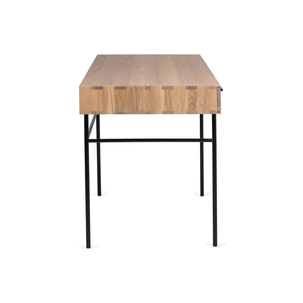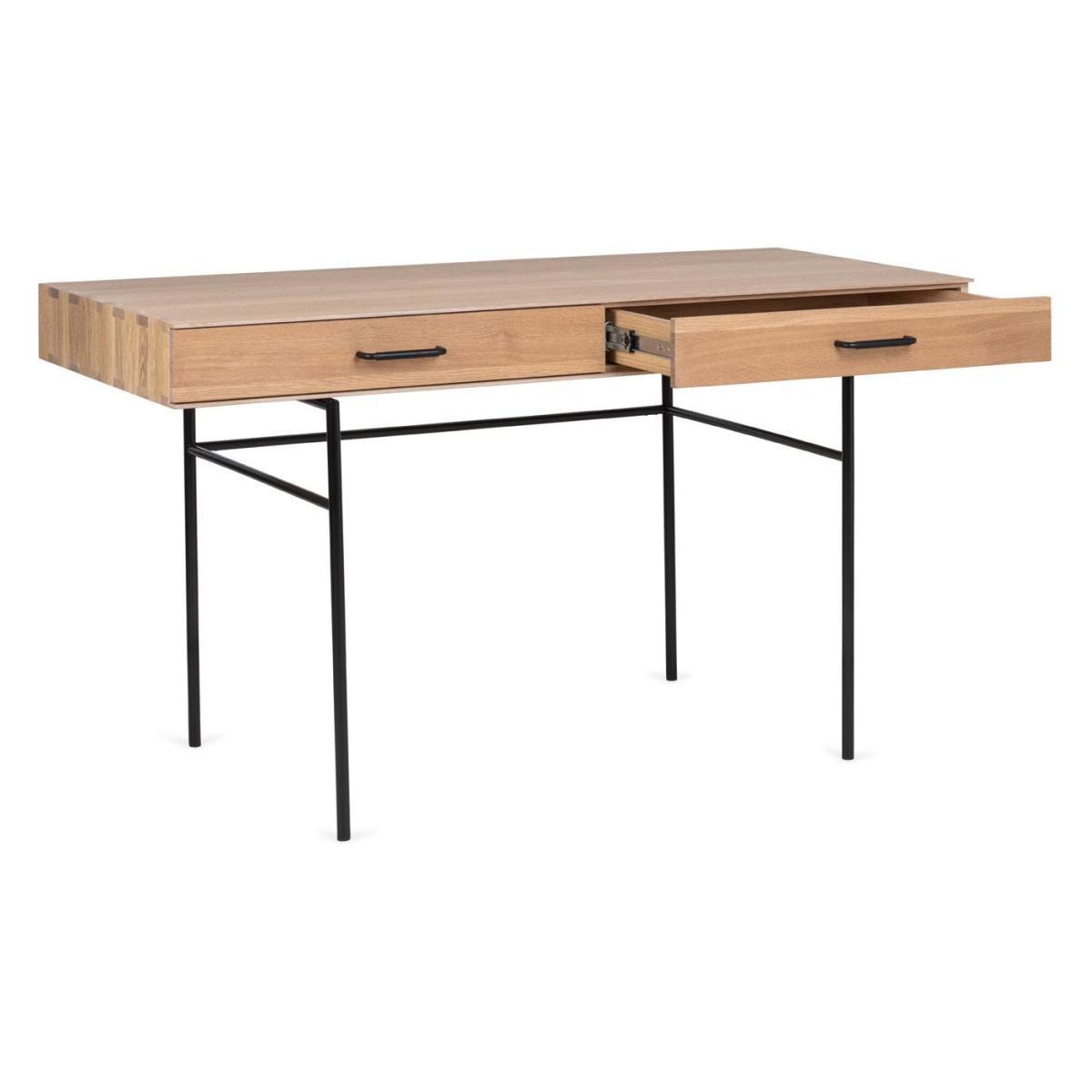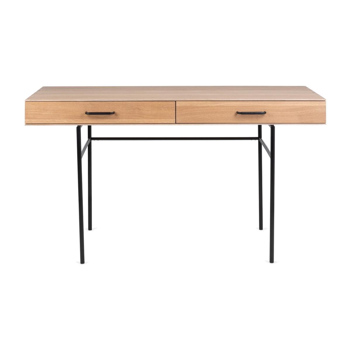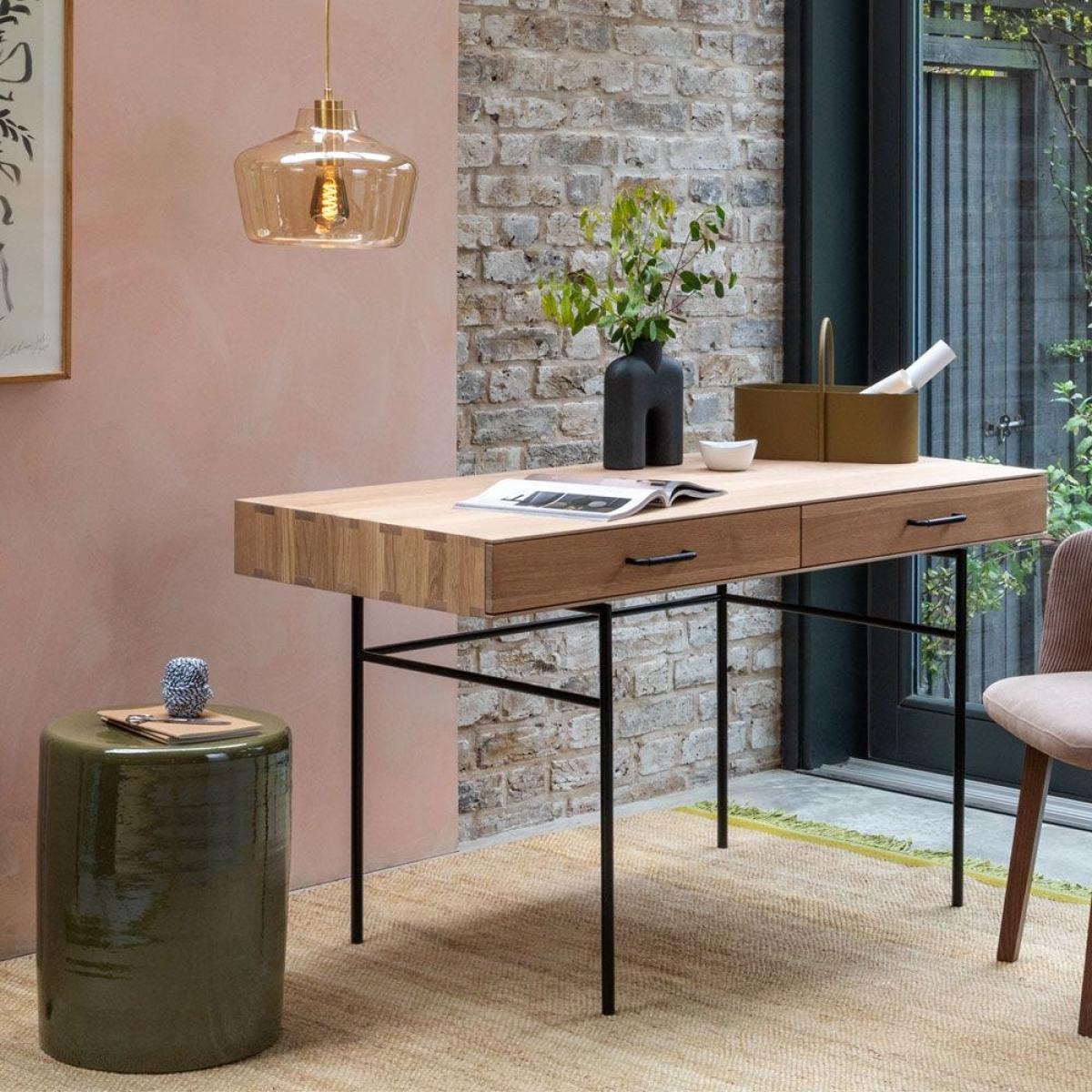 Designed by Danish duo Says Who exclusively for Heals, the Marano collection demonstrates the beauty of simple design with a minimalist expression. The desk is crafted from solid oiled oak, with leather-wrapped handles and intricate finger join detailing to showcase the quality of the wood. Poised on a set of black stiletto legs, the desk is perfectly suited for contemporary schemes and complements a wide range of interior styles. With a spacious rectangular top and two drawers underneath, the Marano makes a fantastic addition to any home office space.