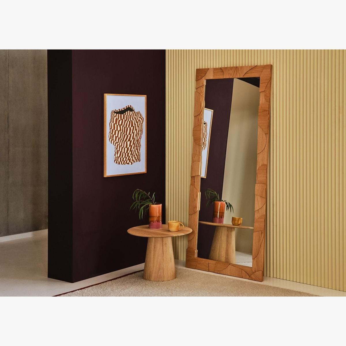 The striking Margot Mirror, designed exclusively for Heal’s by Adam Daghorn, celebrates the natural beauty of oak with its three-dimensional panels. Curved, overlaid pieces create sculptural detail and a rich sense of depth. Designed to lean against the wall, it arrives with a chain that can be attached to the wall to keep the mirror secure.