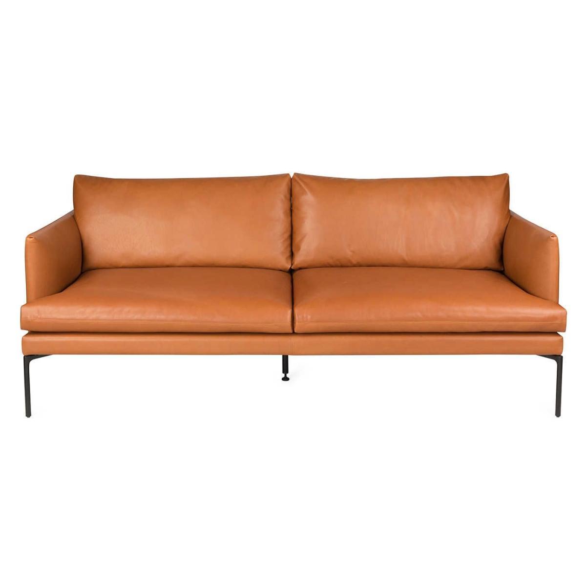 The Matera sofa has a sleek and modern design made with traditional craftsmanship. Taking its name from the southern Italian town in which it is built, its design has all the characteristics of contemporary Italian furniture; clean lines, metal legs and astute attention to detail. The seat, arms and back cushion each have a beautiful pleated detail that is meticulously hand-sewn and the back of the sofa has the slightest of curves which adds to its already elegant silhouette. Upholstered in a buttery, soft leather, the Matera sofa is a masterclass in contemporary design, and provides a generous seating space within a compact footprint.