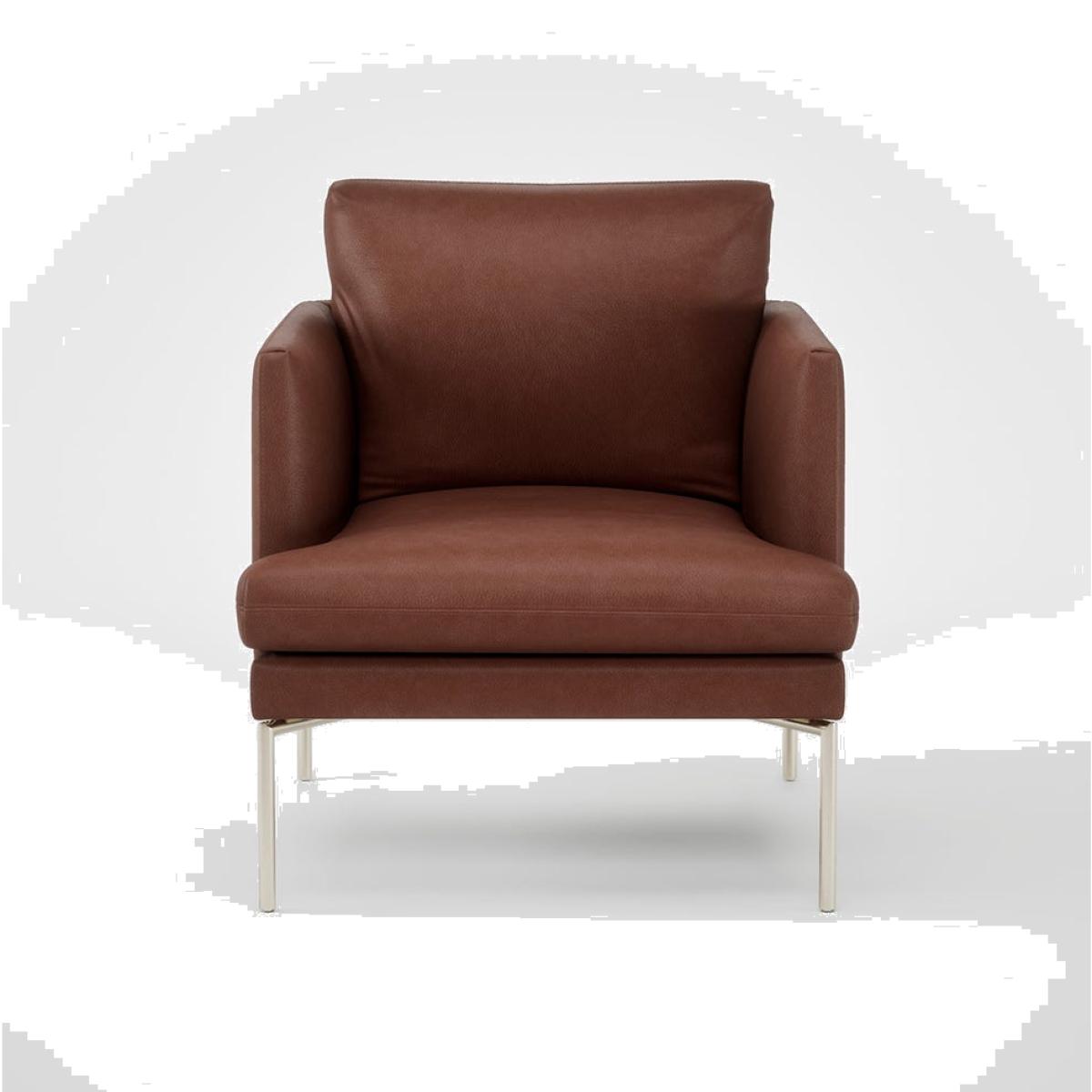 The Matera Armchair has a sleek and modern design made with traditional craftsmanship. Taking its name from the southern Italian town in which it is built, its design has all the characteristics of contemporary Italian furniture; clean lines, metal legs and astute attention to detail. The seat, arms and back cushion each have a beautiful pleated detail that is meticulously hand-sewn and the back of the armchair has the slightest of curves which adds to its already elegant silhouette. Upholstered in a buttery, soft leather, the Matera Armchair is a masterclass in contemporary design, and provides a comfortable seating space within a compact footprint.