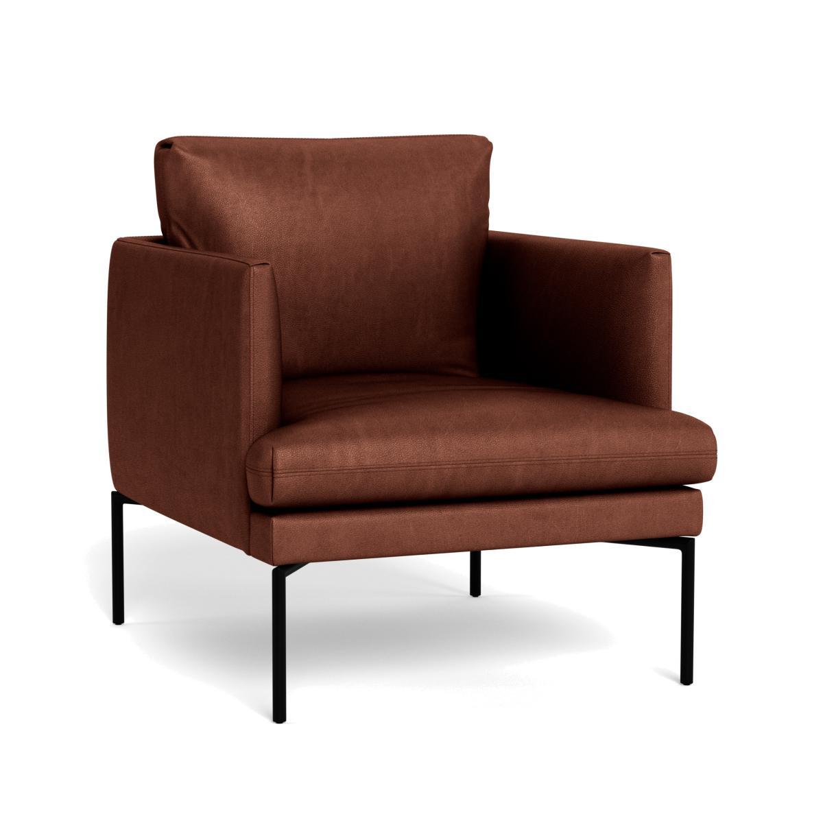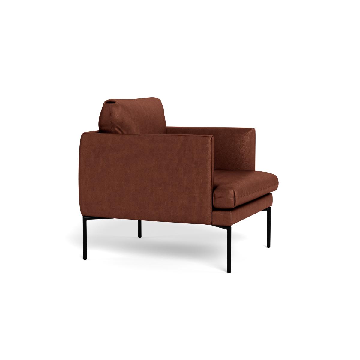 The Matera armchair has a sleek and modern design made with traditional craftsmanship. Taking its name from the southern Italian town in which it is built, its design has all the characteristics of contemporary Italian furniture; clean lines, metal legs and astute attention to detail. The seat, arms and back cushion each have a beautiful pleated detail that is meticulously hand-sewn and the back of the armchair has the slightest of curves which adds to its already elegant silhouette. Upholstered in a buttery, soft leather, the Matera Armchair is a masterclass in contemporary design, and provides a comfortable seating space within a compact footprint.