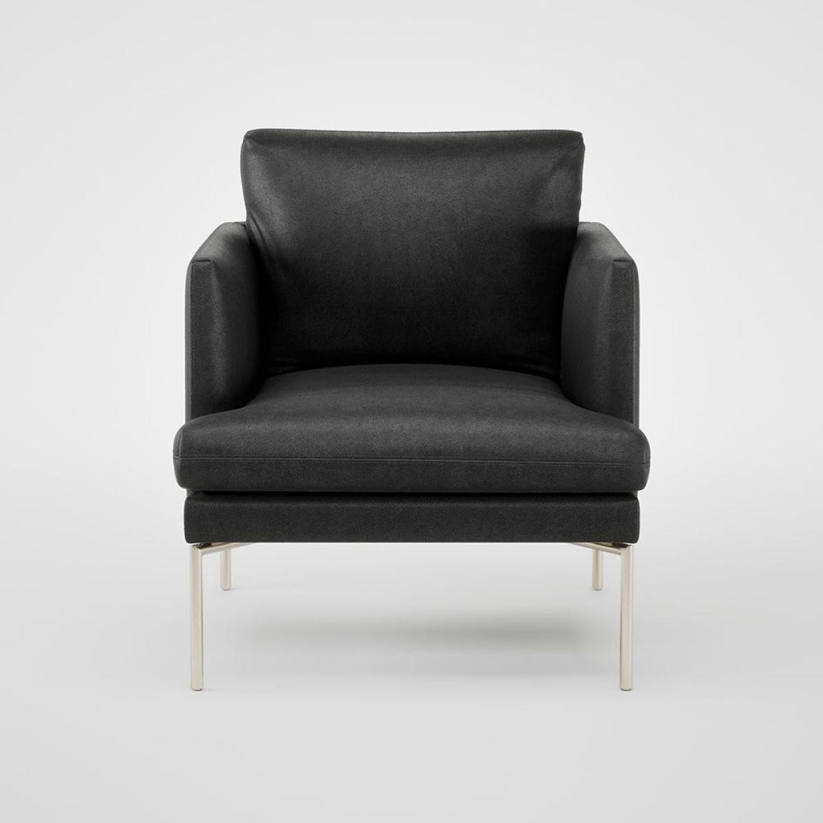 The Matera Armchair has a sleek and modern design made with traditional craftsmanship. Taking its name from the southern Italian town in which it is built, its design has all the characteristics of contemporary Italian furniture; clean lines, metal legs and astute attention to detail. The seat, arms and back cushion each have a beautiful pleated detail that is meticulously hand-sewn and the back of the armchair has the slightest of curves which adds to its already elegant silhouette. Upholstered in a buttery, soft leather, the Matera Armchair is a masterclass in contemporary design, and provides a comfortable seating space within a compact footprint.