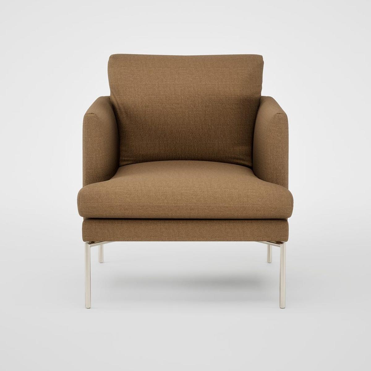 The Matera Armchair has a sleek and modern design made with traditional craftsmanship. Taking its name from the southern Italian town in which it is built, its design has all the characteristics of contemporary Italian furniture; clean lines, metal legs and astute attention to detail. The seat, arms and back cushion each have a beautiful pleated detail that is meticulously hand-sewn and the back of the armchair has the slightest of curves which adds to its already elegant silhouette. Upholstered in a buttery, soft leather, the Matera Armchair is a masterclass in contemporary design, and provides a comfortable seating space within a compact footprint.