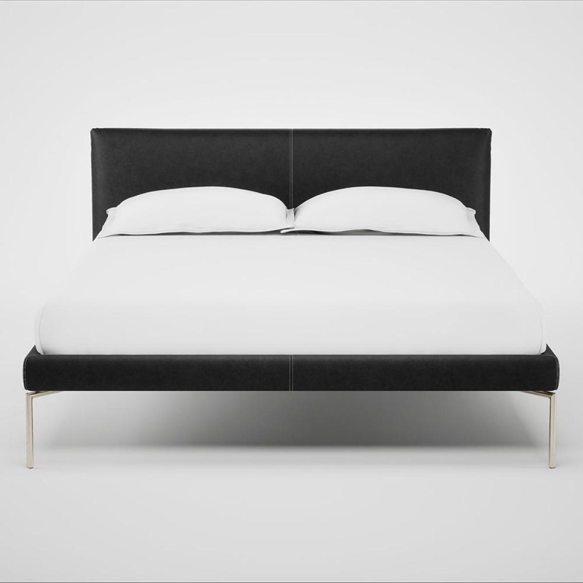 Heal's Matera Bed Double Grain Leather Graphite 063 Stainless Steel Foot