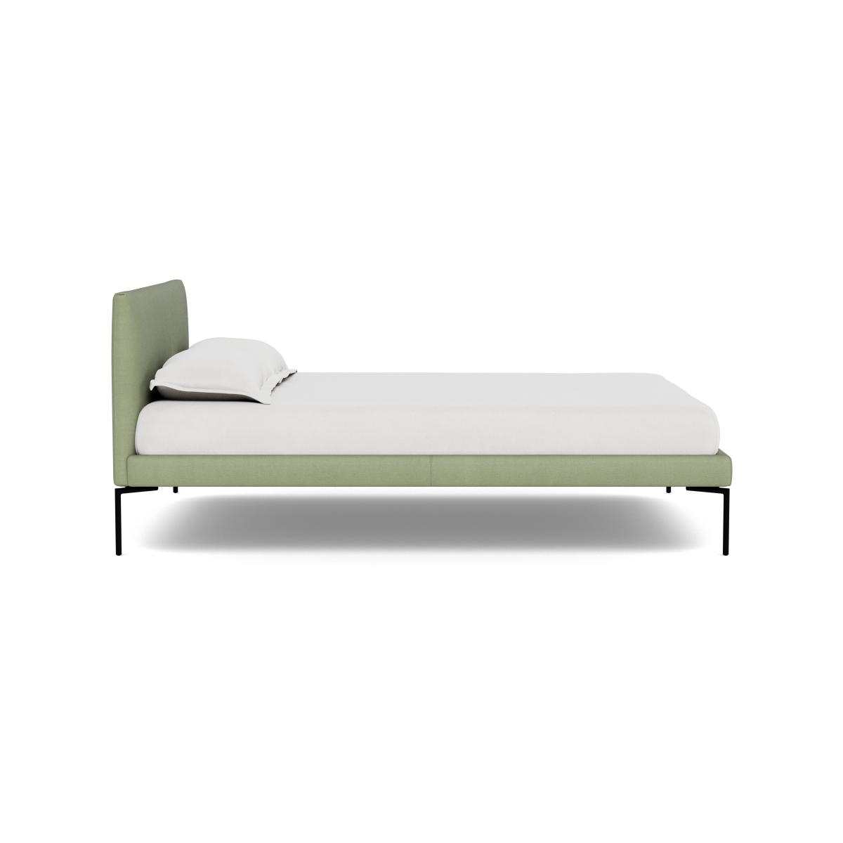 I’d refer to this simply as the Matera double - its slim black legs and soft pistachio upholstery give it a modern yet unfussy presence. It slots straight into Scandi-inspired schemes or mid-century settings, and the muted green works equally well against pale walls or a deeper accent tone. Styling tip: keep bedding crisp white or light grey, then layer in natural textures - think a jute rug, oak or ash-veneered side tables and linen throws in terracotta or clay shades. A couple of matte-brass lamps or simple black-metal wall lights will tie in with the frame and add subtle contrast.