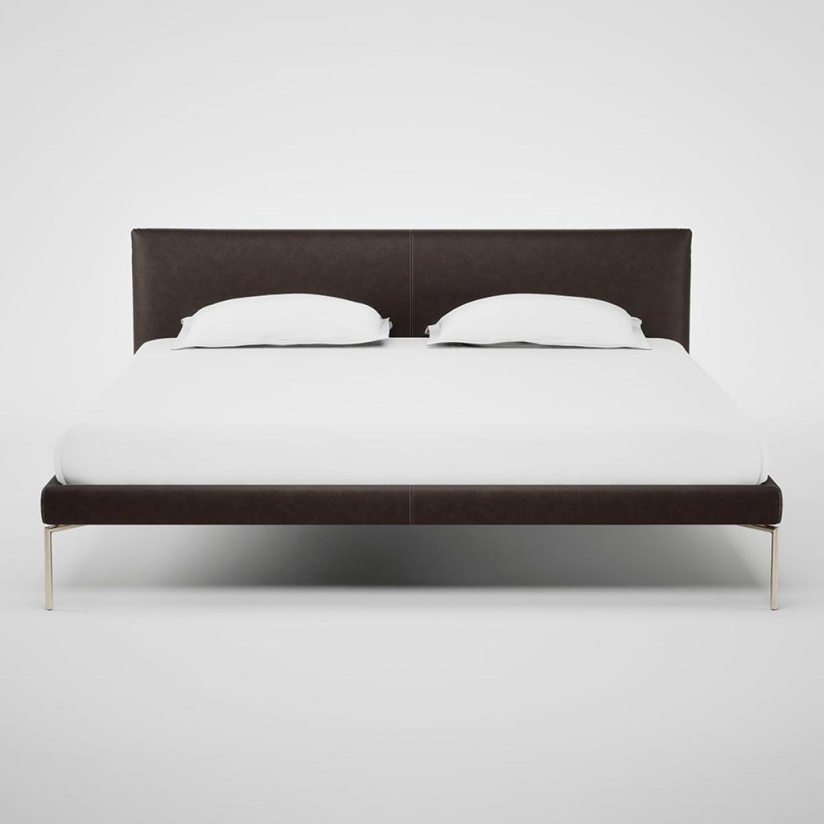 Heal's Matera Bed Super King Grain Leather Chocolate 066 Stainless Steel Foot