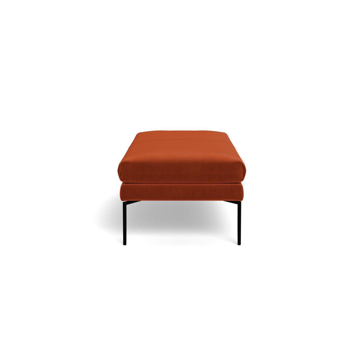 I love this bench for its sleek, contemporary look and versatile size, making it an excellent addition to various interiors. The rich rust-toned velvet adds warmth and texture, working beautifully in both modern and eclectic schemes. It pairs well with neutral tones for contrast or with bold colours to add a touch of luxury. Practical styling tips include using it as a statement piece at the foot of a bed, a stylish extra seat in a living area, or as an accent surface for trays and decor. Its slender black legs provide a light, airy feel that keeps the overall look clean and uncluttered - perfect for adding that touch of elegance without overwhelming the space.