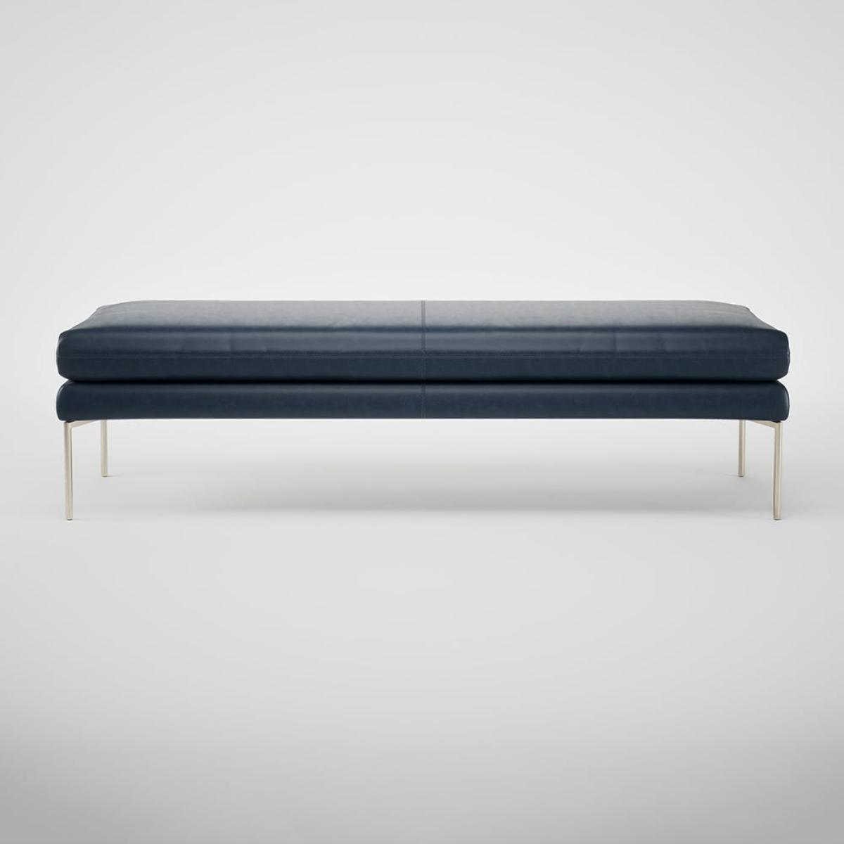 Heal's Matera Bench 160cm Stonewash Leather Navy Blue 279 Stainless Steel Foot