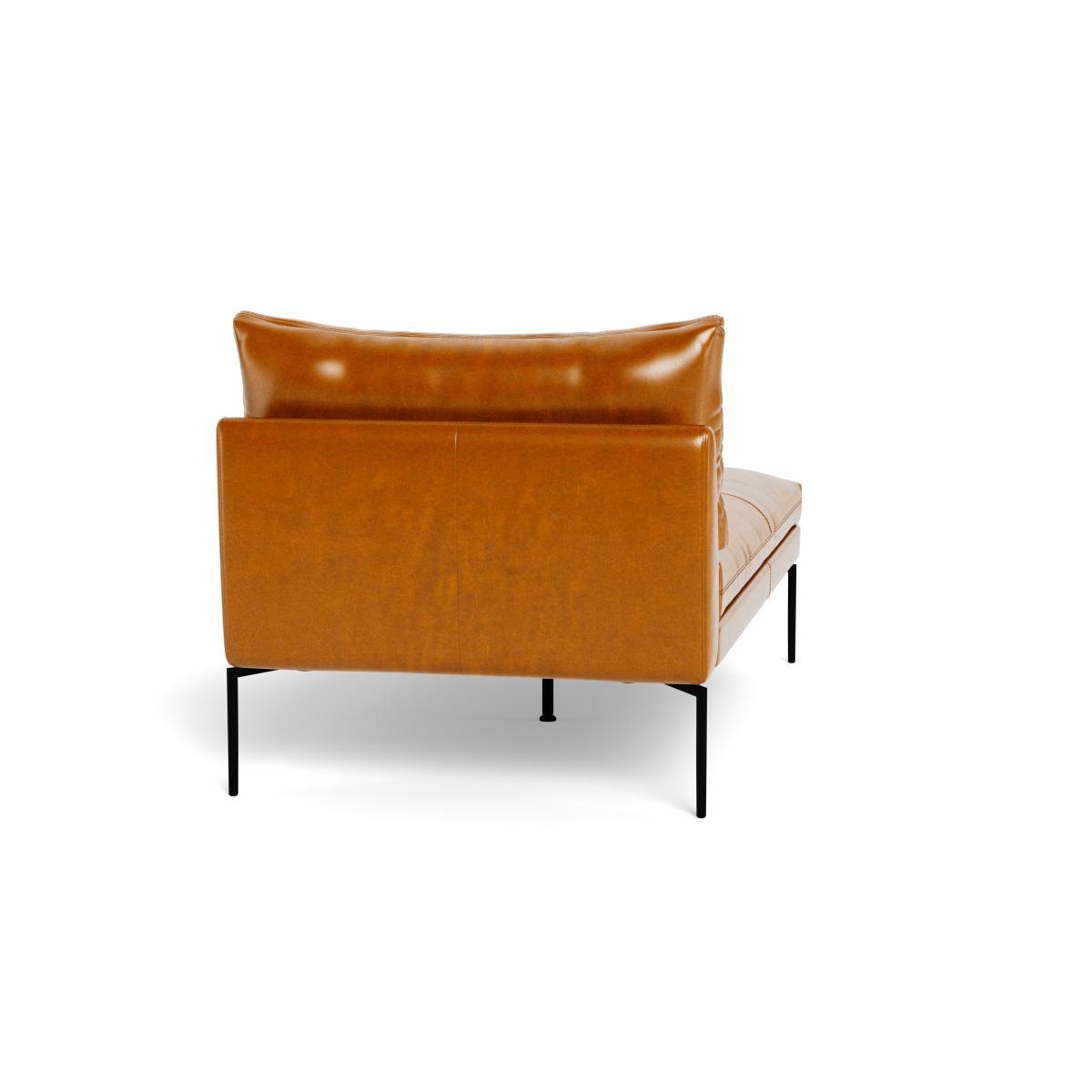 I love this one for its clean, modern silhouette combined with the rich leather finish, which adds both sophistication and warmth to a space. It’s incredibly versatile - works well in contemporary, industrial, or even minimalist interiors when paired with neutral tones or textured accents. The toffee leather creates a welcoming feel, making it ideal as a statement piece in a lounge or a chic corner in a larger open-plan room. For styling tips, consider adding a few layered cushions or a throw in contrasting textures or colours to soften the look and invite comfort. Because of its leather and sleek design, it pairs brilliantly with metal or wood accents, and I’d avoid cluttering its surroundings to let this piece truly stand out.
