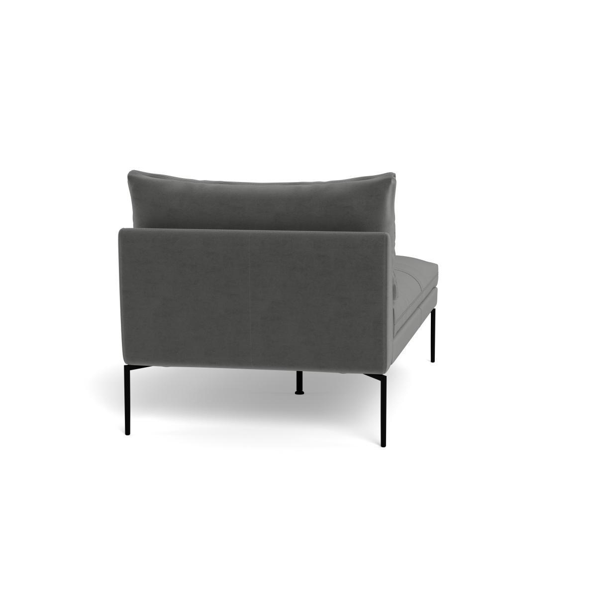 I love this chaise for its sleek, contemporary silhouette combined with the sumptuous Nobilis velvet in a classic dolphin black - it’s both chic and versatile. It works particularly well in modern or minimalist interiors, but can also add richness to more eclectic or luxurious schemes. Practical styling tips include pairing it with neutral or muted tones to let the velvet’s texture shine, or layering with cushions and throws in complementary colours for added comfort and visual interest. Its clean lines and elegant legs make it an ideal statement piece in a lounge, reading nook, or even a sophisticated bedroom corner, offering both style and practicality.