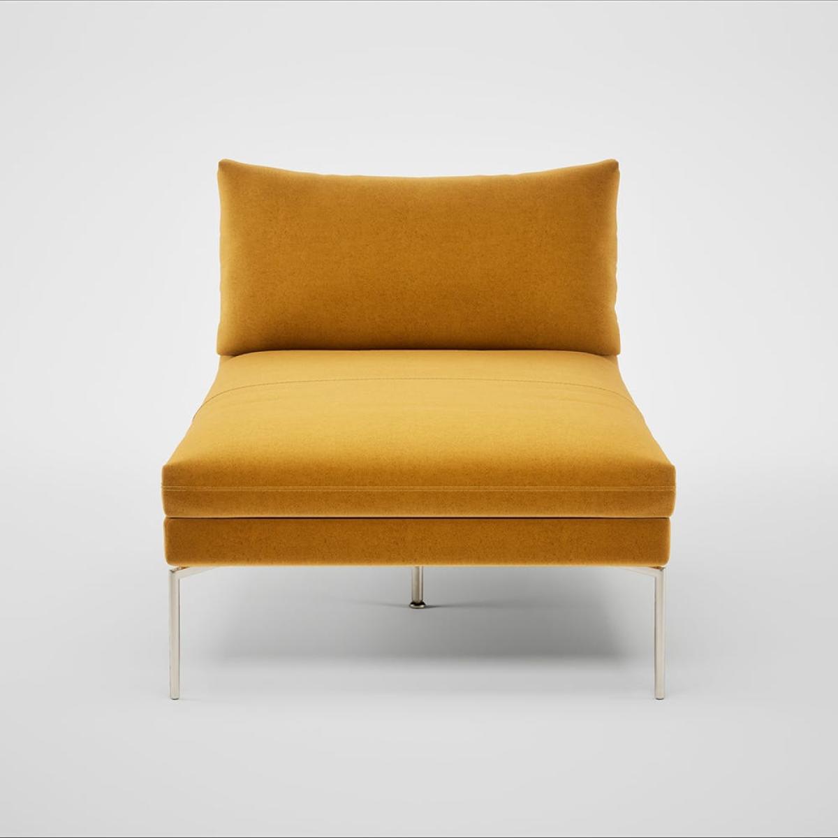 Heal's Matera Chaise Longue Nobilis Velvet Mustard Stainless Steel Foot