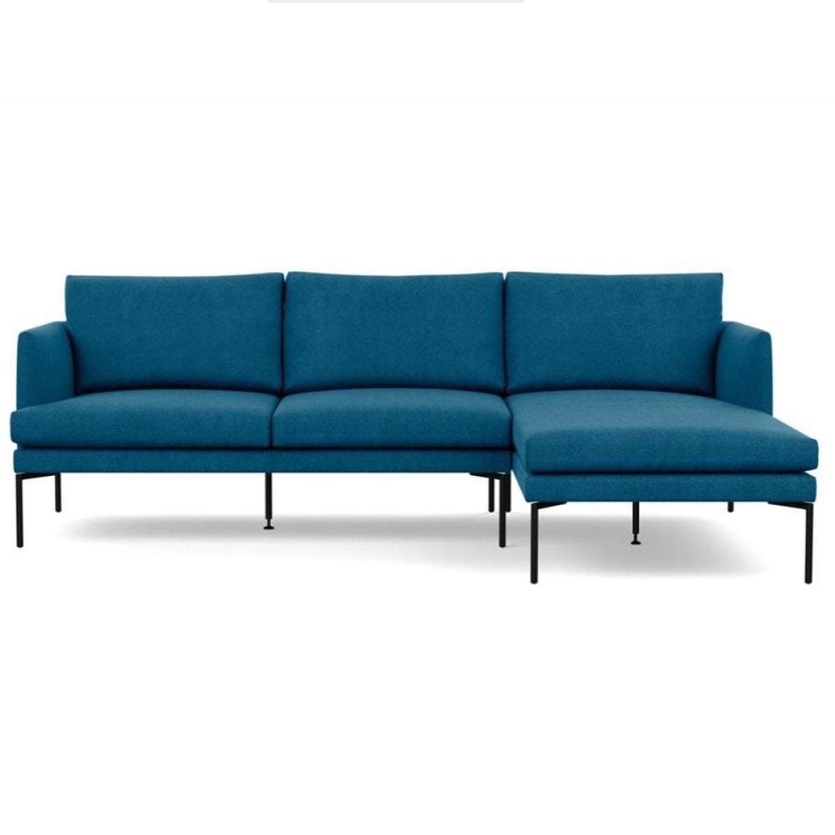 Heal's Matera Corner Chaise Sofa RHF Leather Stonewash Navy Blue 279 Black Feet - Heal's UK Furniture