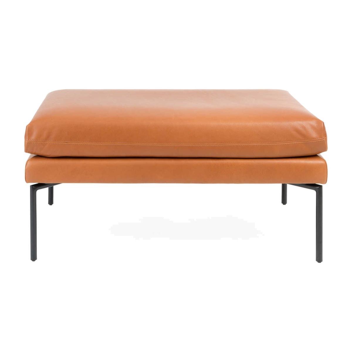 I love this leather ottoman for its clean, minimalist design and versatility. The grain texture adds subtle visual interest, making it a sophisticated addition to both contemporary and understated Interiors. It works particularly well in living rooms with neutral or muted palettes, providing a practical yet stylish footrest or extra seating. For styling, consider pairing it with sleek, mid-century-inspired furniture for a modern look, or soften the space with layered textiles and warm accessories to create a cosy lounge area. Its neutral leather finish makes it easy to incorporate into various colour schemes, and it can be a great anchor piece in open-plan spaces where flexibility is key.