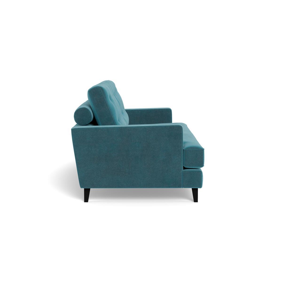 I love this sofa for its striking Airforce Blue Luxe velvet, which adds a rich, contemporary touch to both modern and classic interiors. It’s versatile enough to work well in minimalist schemes when paired with neutral tones, as well as more eclectic spaces with bold accessories. The black feet give it a sophisticated edge and help it anchor the look without overpowering. Practical styling tips include contrasting it with tactile throws alongside patterned cushions for added depth, or balancing its luxe feel with neutral or textured rugs. Its slim, elegant profile makes it a great choice for smaller living areas, while still offering plenty of comfort for relaxed lounging.