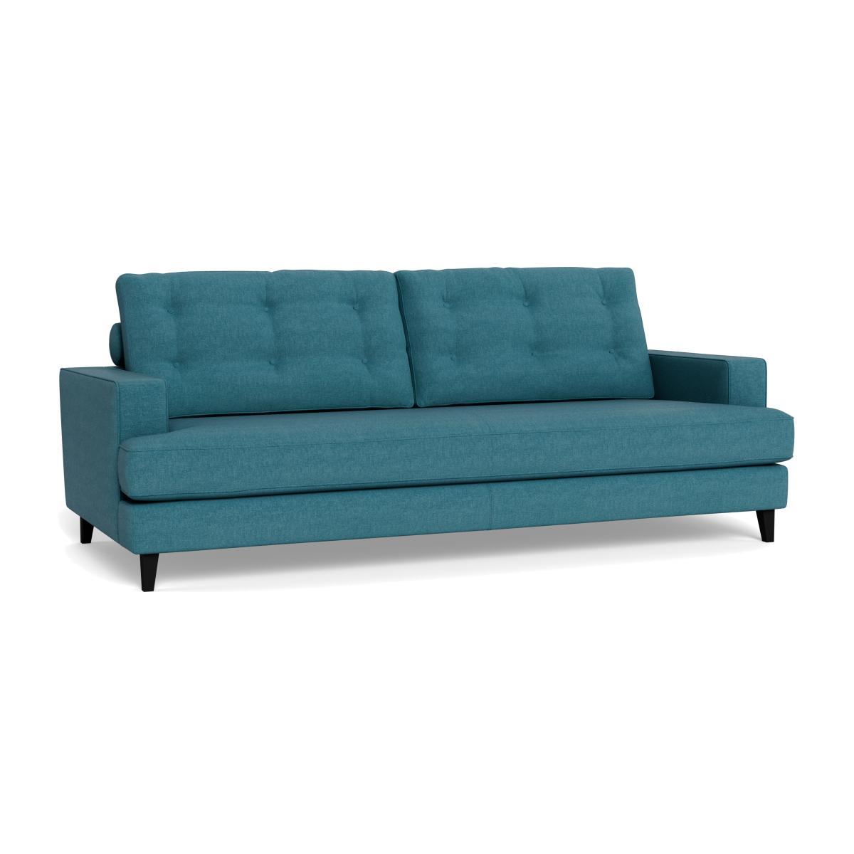 I love this sofa for its versatile mid-century design combined with a rich, tactile fabric that instantly adds warmth and character to a space. The teal hue works beautifully in both contemporary and eclectic interiors, providing a lively focal point or complementing earthy tones. Its clean lines and simple silhouette make it adaptable, whether paired with soft textural cushions and throws for a relaxed look, or styled with sleek, structured accessories for a more modern feel. Practical styling tips include layering with contrasting cushions in neutral or patterned fabrics, and adding a cosy throw to highlight the brushed cotton finish. The 'Mistral' sofa is a great choice for creating a welcoming, stylish lounge that feels both timeless and inviting.