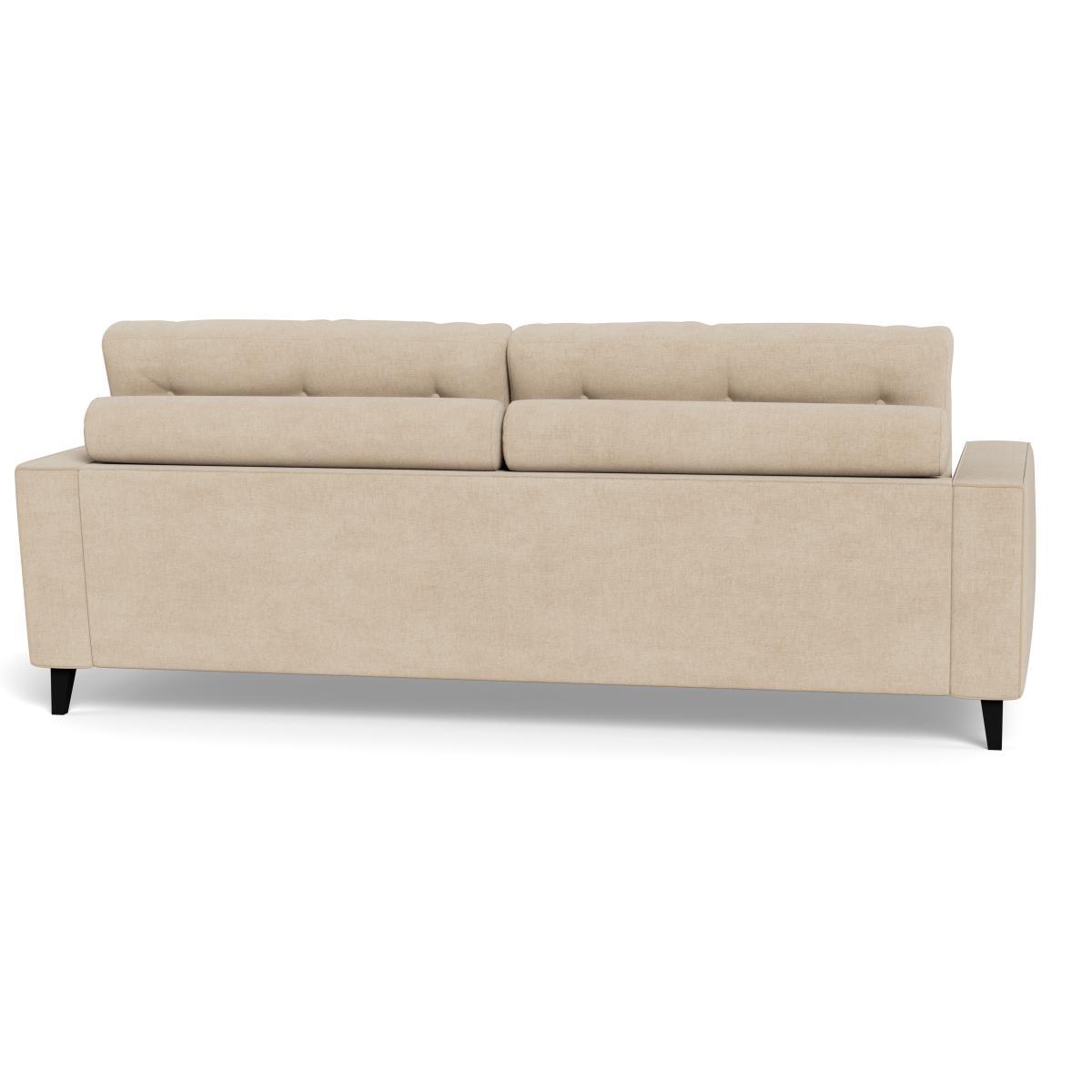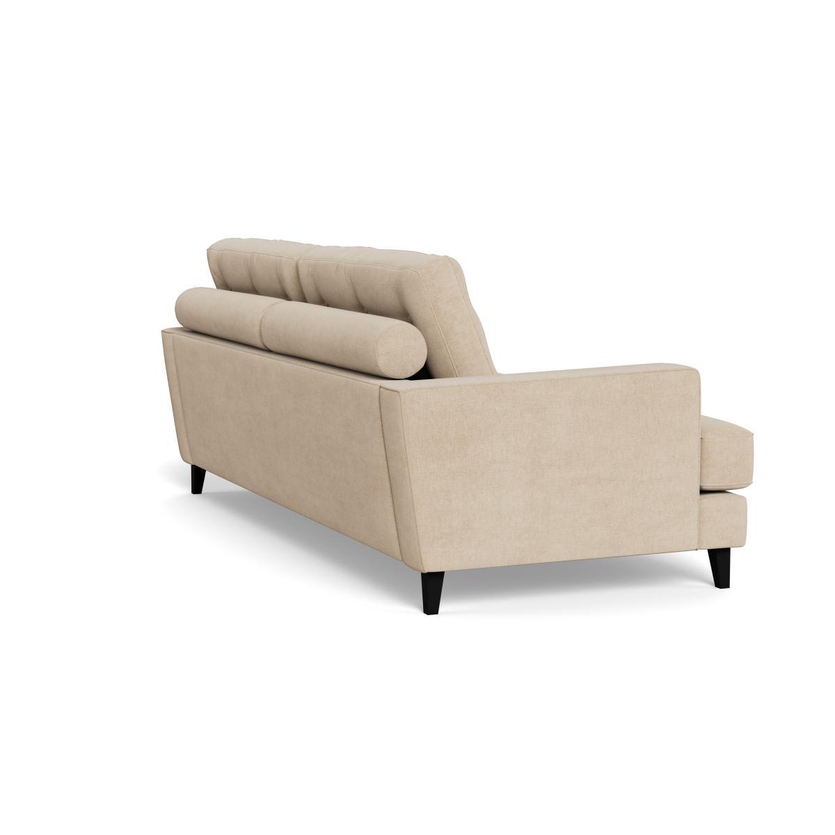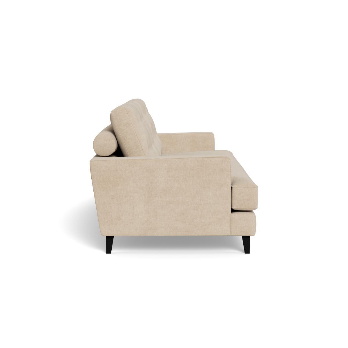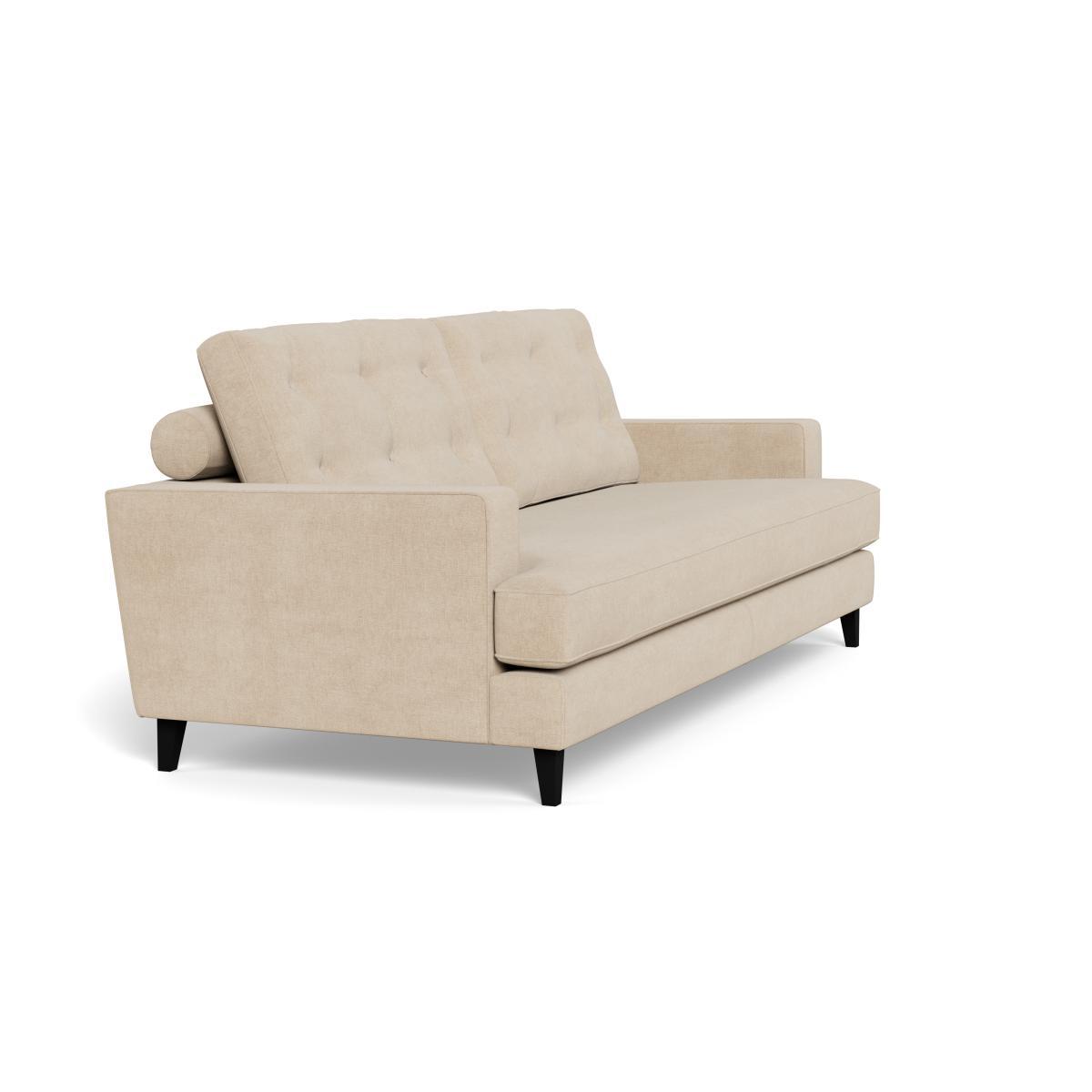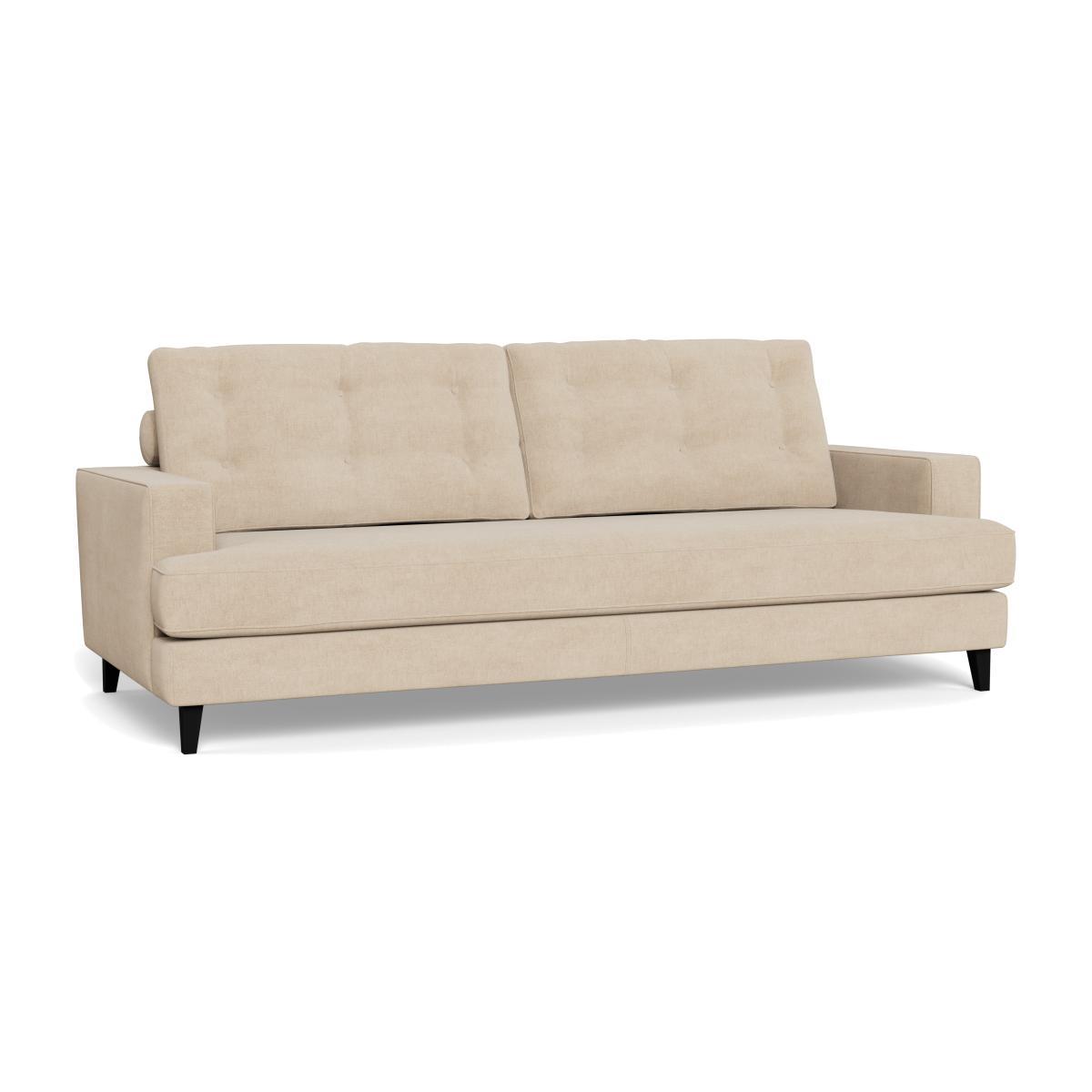 I love this sofa for its versatile, understated appeal and its practical brushed cotton fabric in a neutral oat shade, which offers a softer, more relaxed look compared to traditional linen or leather options. The black feet add a subtle contrast that complements both contemporary and mid-century interiors. It works particularly well in urban or minimalist spaces when styled with textured cushions and throws for added comfort, or in a cosy family lounge with layered rugs and statement lighting. For a more polished look, pairing it with mid-century side tables or warm wood tones can really elevate the aesthetic. Its clean lines and neutral palette make it adaptable for a wide range of styles, whether you prefer Scandi simplicity or a slightly more eclectic mix.