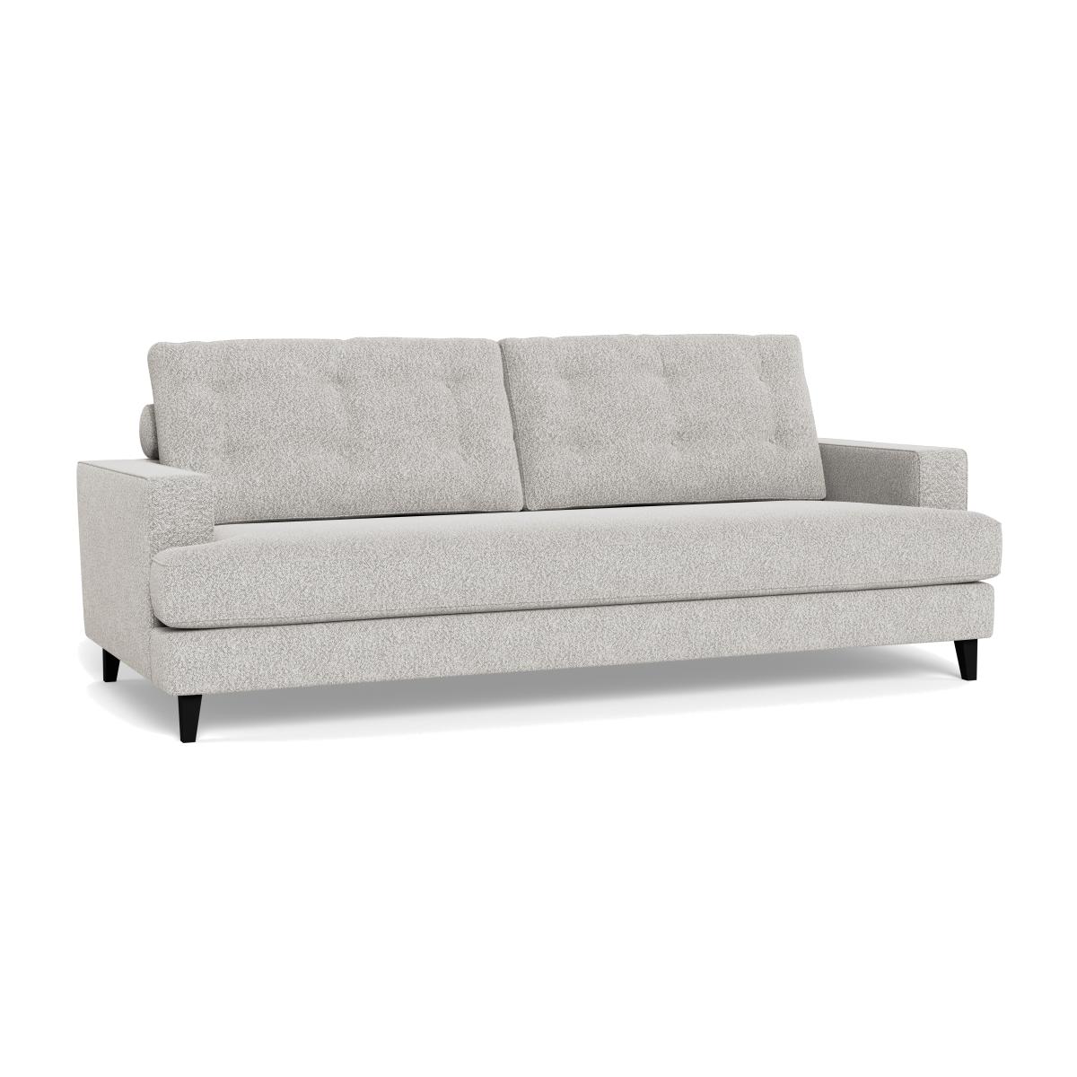 I love this sofa for its versatile, minimalist silhouette and inviting chunky boucle fabric, which adds texture without overpowering a space. It works well in both modern and contemporary interiors, especially those leaning towards neutral palettes or where you want a soft, relaxed vibe. Practical styling tips include pairing it with layered textiles like textured throws or cushions in complementary earthy tones or muted colours to enhance its tactile appeal. Its natural feet and understated profile make it adaptable for a variety of schemes, from cosy, lived-in look to more polished, sophisticated settings. It’s also a great piece for smaller living rooms where its clean lines help maximise space while keeping the room feeling light and airy.