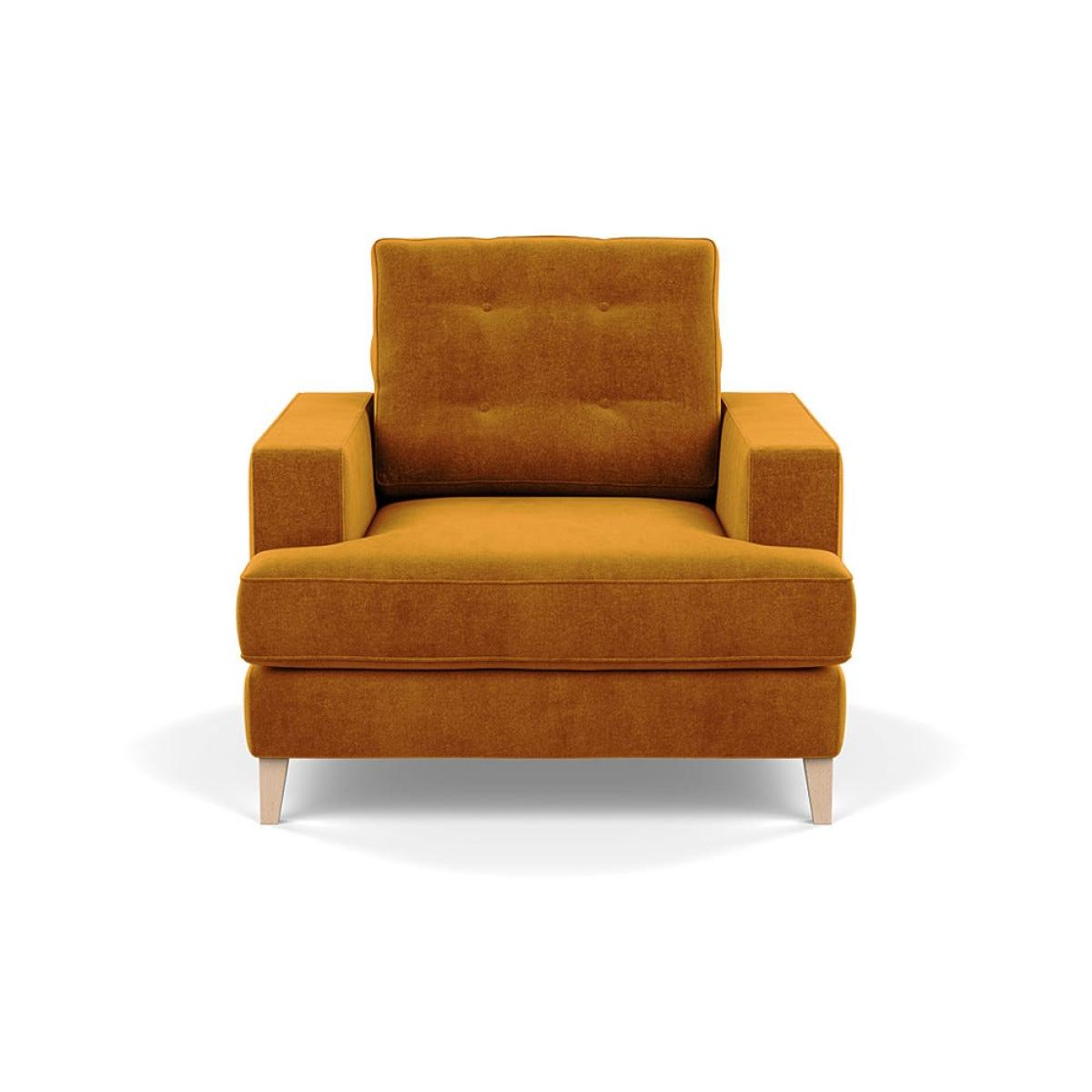 Heal's Mistral Armchair Smart Luxe Velvet Cognac Natural Feet