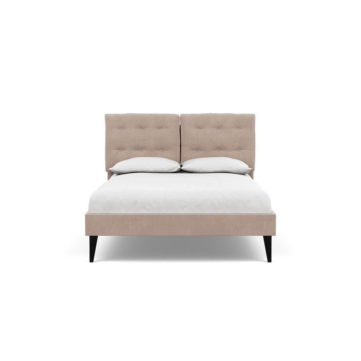 I love this one for its versatile, understated appeal, making it a great choice for both contemporary and classic interiors. The broad weave fabric in Putty paired with black feet creates a balanced look that adds warmth without overwhelming a room. It works particularly well in neutral or monochrome schemes, where its texture and subtle colour can shine, but it can also anchor more colourful or patterned bedrooms. Practically, its clean lines and neutral tones make styling easy; you can dress it up with crisp linens and layered cushions for a refined look or keep it pared-back for a relaxing, minimalist vibe. Additionally, the double size provides generous proportions, perfect for creating a cosy yet stylish bedroom retreat.
