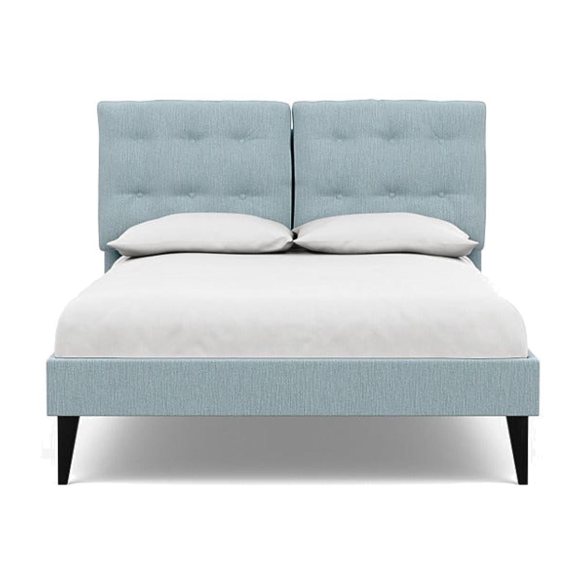 Heal's Mistral Double Bed Smart Linen Mix Duck Egg Black Feet - Heal's UK Bedroom Furniture