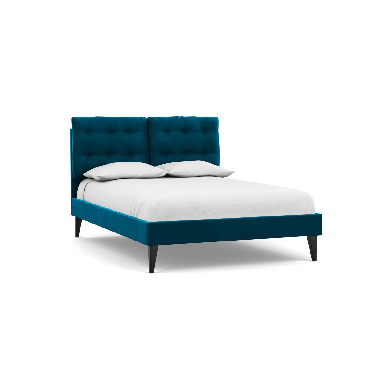 Heal's Mistral Double Bed Velvet Teal Black Feet - Heal's UK Bedroom Furniture