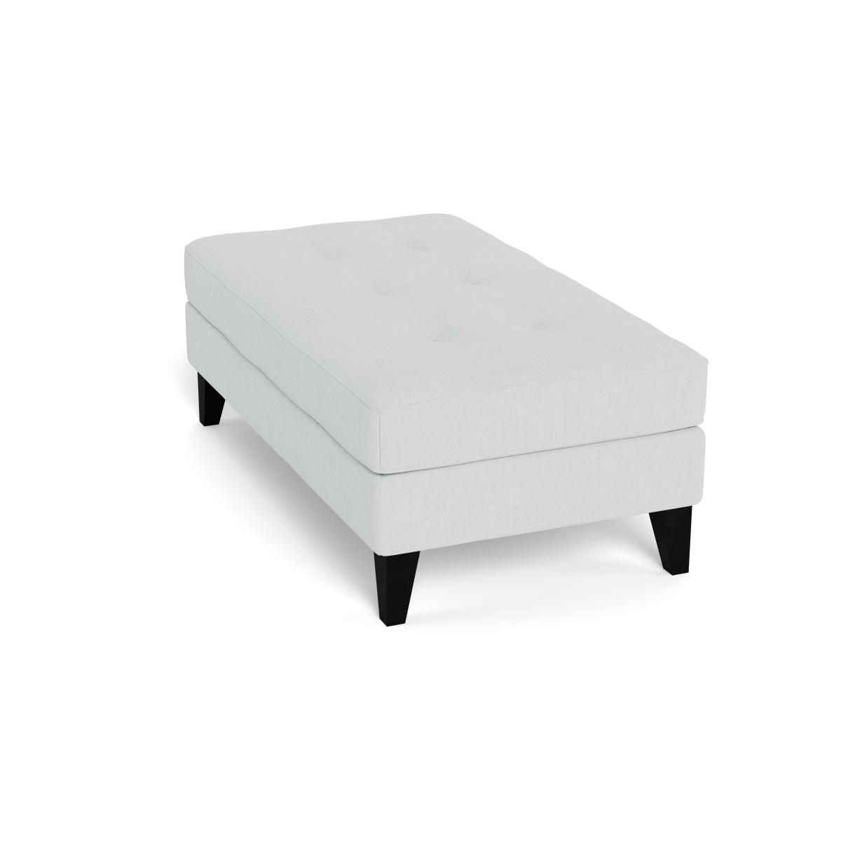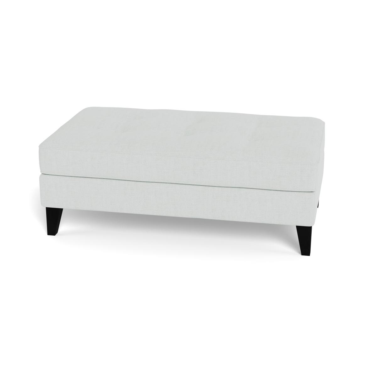 I love this footstool for its versatile, understated design and the subtle texture of the broad weave fabric in a modern tin shade. It works well in contemporary, minimalist, or even eclectic interiors, adding a touch of soft sophistication without overpowering the space. Practical styling tips include placing it alongside a statement armchair or sofa as a natural footrest, or using it as an additional seating option when entertaining. Its neutral tones make it easy to layer with patterned or colourful cushions and throws, helping to create a cosy yet stylish environment. The black legs add a subtle contrast, grounding the piece in various colour schemes and making it adaptable for different interior styles.
