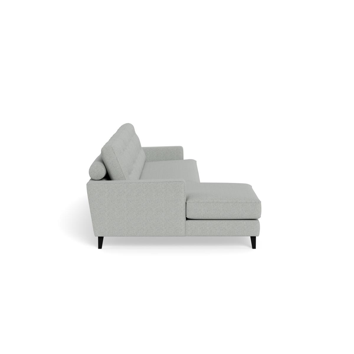 I love this corner sofa for its clean, contemporary look, which works particularly well in modern or minimalist interiors. The Melton wool fabric in limestone adds a subtle texture and neutral tone, making it versatile enough to pair with various colour palettes and accessories. Its left-hand configuration is perfect for open-plan living spaces or larger rooms where creating a cosy, inviting seating area is a priority. For styling, consider adding layered cushions in contrasting colours or patterns to introduce visual interest, and keep surrounding décor simple with sleek side tables or understated lighting to let the sofa be the focal point. The black feet give it a contemporary edge and help anchor the piece visually, especially if placed against lighter or patterned walls.