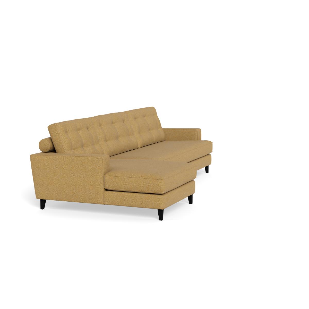 This corner sofa is a fantastic choice for adding a cosy yet stylish focal point to a living room. I love its boucle tweed fabric in citrine, which offers a subtle texture and a warm tone that works well with both contemporary and retro-inspired interiors. The black beech feet add a sleek contrast, giving it a slightly Scandinavian feel that can be paired effortlessly with neutral or patterned cushions. Practical styling tips include layering with textured throws or mixing in complementary colours like muted greys or rich jewel tones for a personalised look. It’s ideal for open-plan spaces or family rooms where comfort and style are equally important, and its versatile shape makes it perfect for creating inviting social zones.