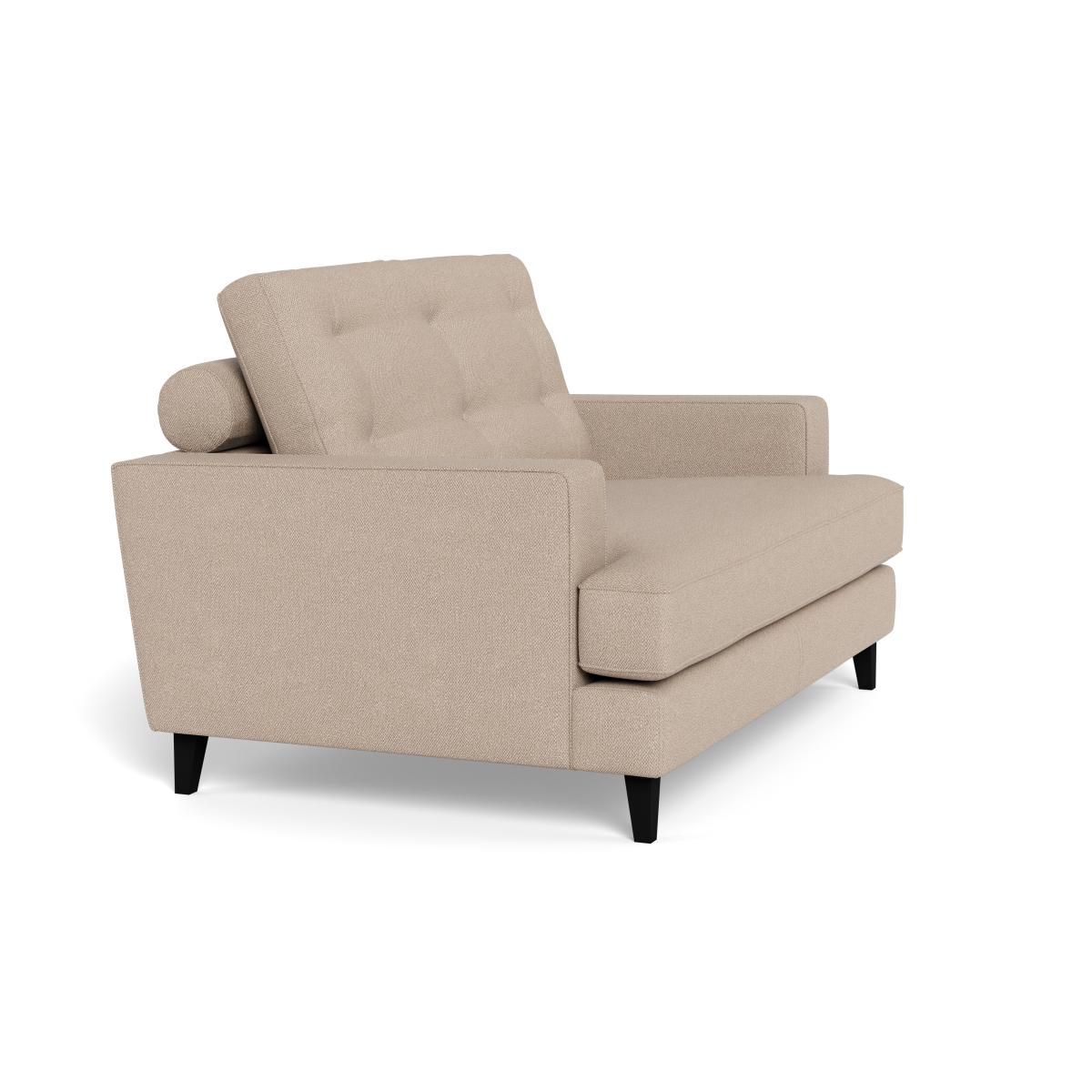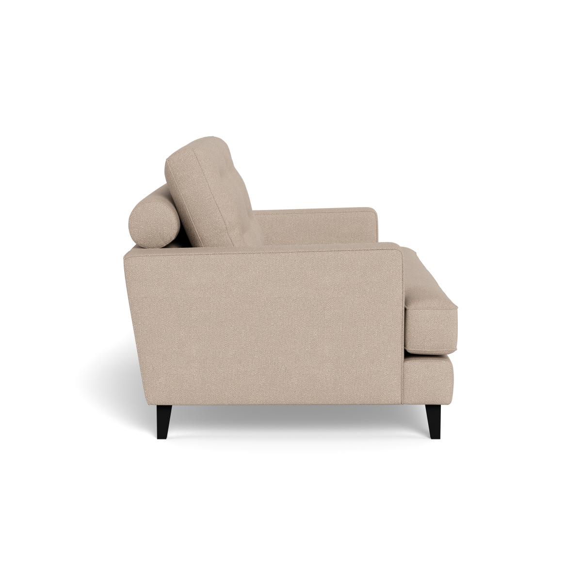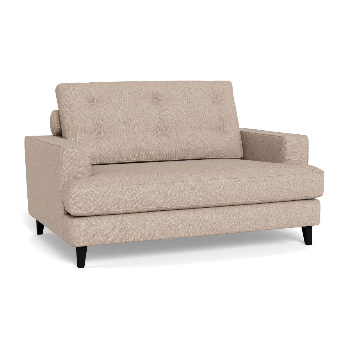 I love this little loveseat for its versatile neutral tone and textured boucle tweed fabric, which adds subtle tactile interest. It works exceptionally well in contemporary or minimalist interiors, where its clean lines and understated elegance can really shine. Practical styling tips include pairing it with soft throw cushions in contrasting colours or textures to add warmth and personality, and positioning it against a patterned or coloured rug to create visual depth. Its compact size makes it ideal for smaller living spaces or as a cosy extra seating option, while the black beech feet add a modern touch that anchors the piece nicely in any room. Overall, it’s a timeless, adaptable choice that balances comfort with style.