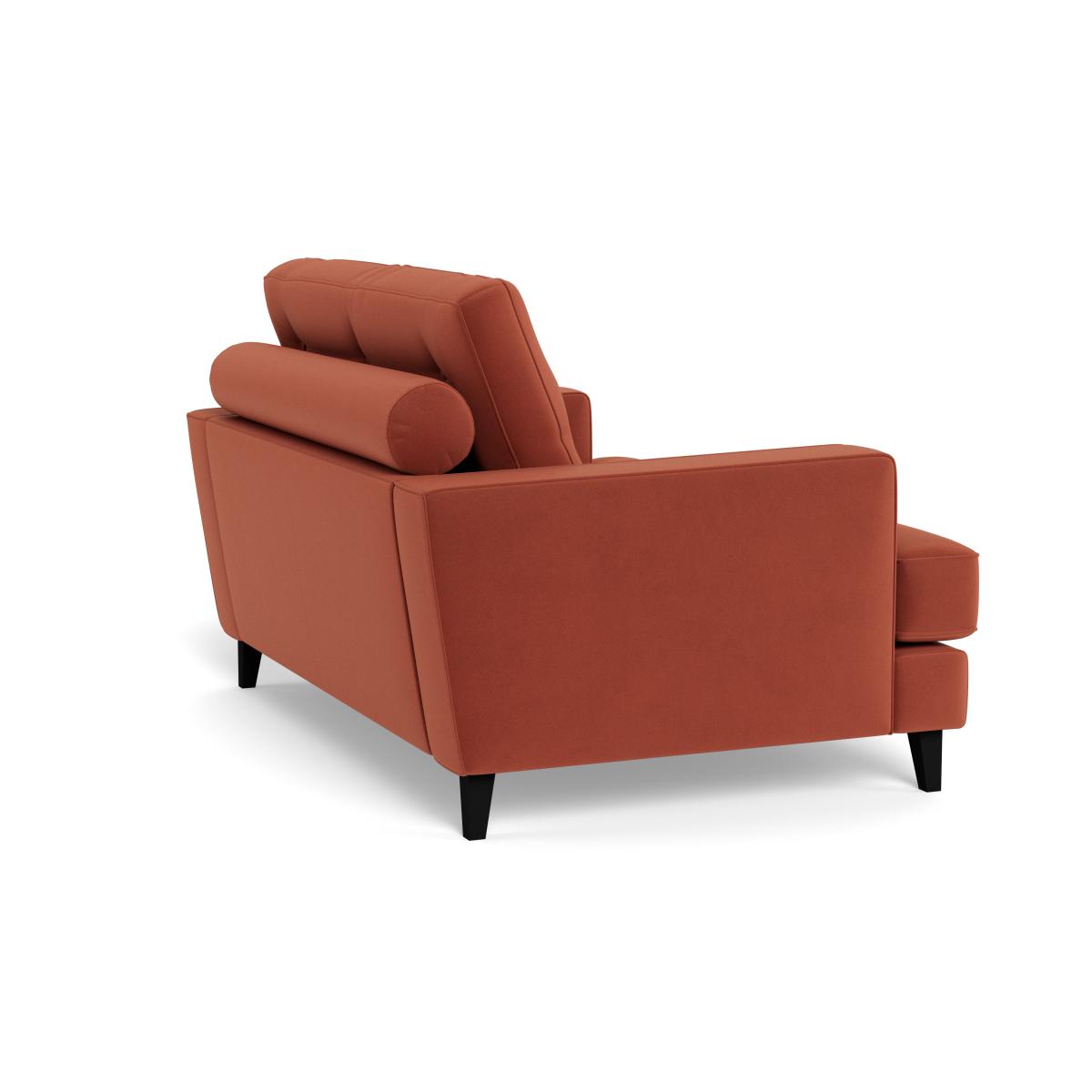 I really like this loveseat for its versatile style and plush velvet finish; the warm tawny colour adds a cosy yet sophisticated touch. It works particularly well in contemporary or mid-century inspired interiors, especially when mixed with brass or matte black accents. Practical styling tips include pairing it with layered textured cushions and a contemporary throw for added comfort and visual interest. Its size makes it an excellent choice for smaller living rooms or as a statement piece in a larger space, and the black feet give it a grounded, modern edge. This piece is great for creating a relaxed, inviting atmosphere while maintaining a polished aesthetic.