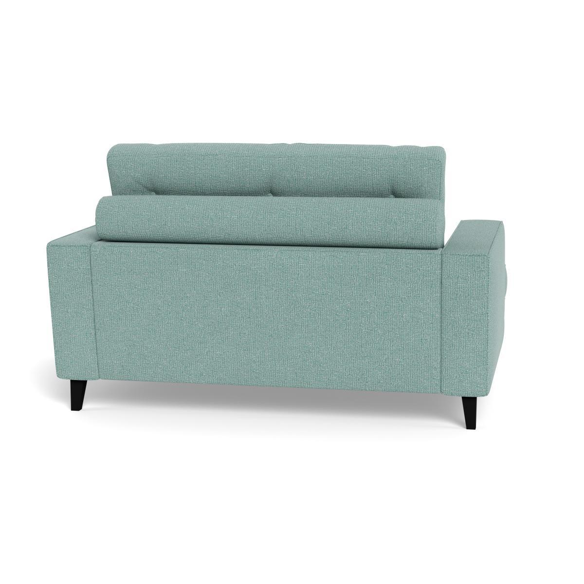 I love this loveseat for its versatile colour and modern silhouette, making it a great addition to both contemporary and transitional interiors. The teal hue adds a pop of colour without overwhelming the space, working well with neutral palettes or layered with other bold accents. Its compact size makes it ideal for smaller living rooms or as supplementary seating in larger spaces. For styling, consider complementing it with textured cushions and throw blankets in soft, natural fibres to add warmth and interest. Pairing it with light wood or black accents can help create a balanced, stylish look, while keeping the natural feet detail subtle and sophisticated. It’s a practical, chic piece that offers comfort and flexibility for a range of interior styles.