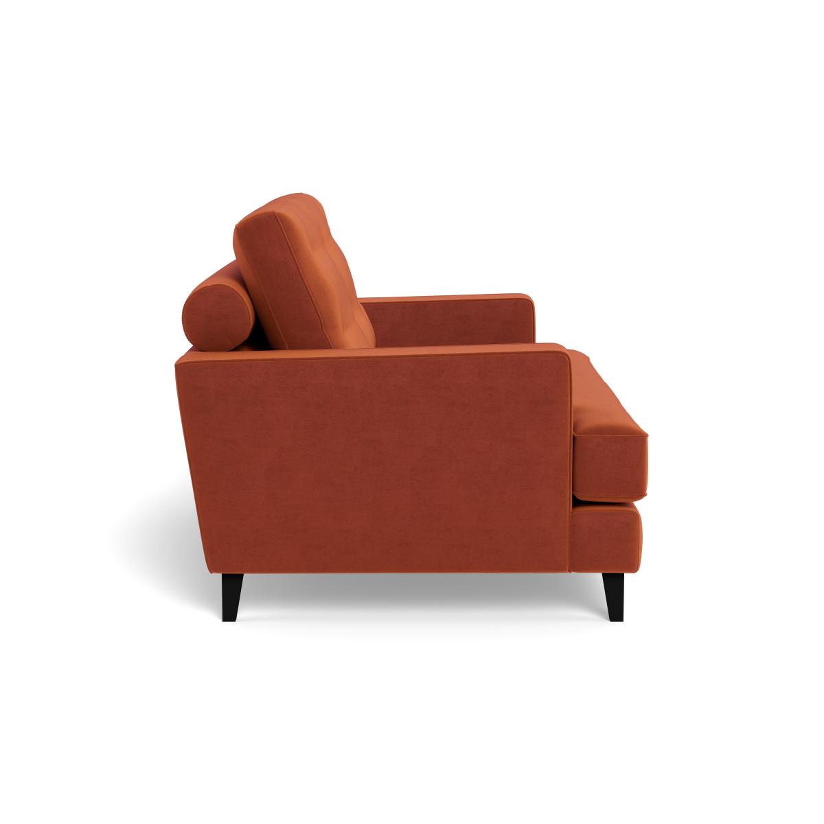 I love this little loveseat for its versatile colour and classic silhouette; the russet velvet adds warmth and richness, making it a great statement piece in both contemporary and traditional interiors. It's perfect for smaller living rooms or cosy corners, offering comfortable seating without overwhelming the space. When styling, consider pairing it with textured cushions in neutral or complementary shades to add visual interest, or match it with warm wood tones and metallic accents for a sophisticated feel. Its natural feet and understated design ensure it remains adaptable, so it can be dressed up with throw blankets or complemented by surrounding furniture for a cohesive look. This seat works particularly well in eclectic, mid-century modern, or modern classic schemes.