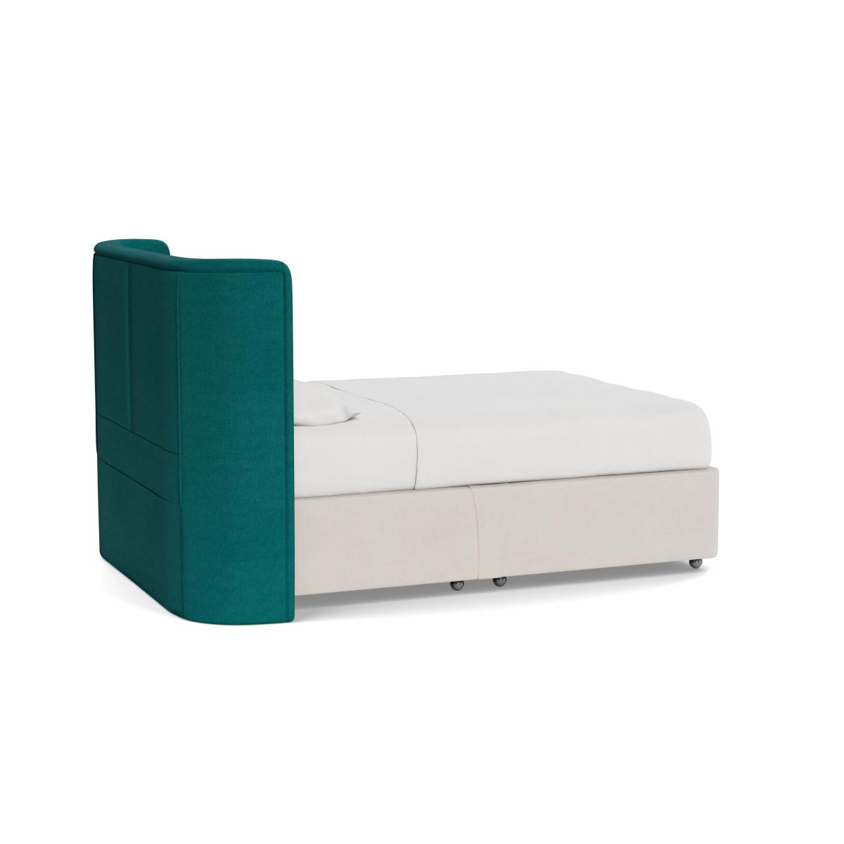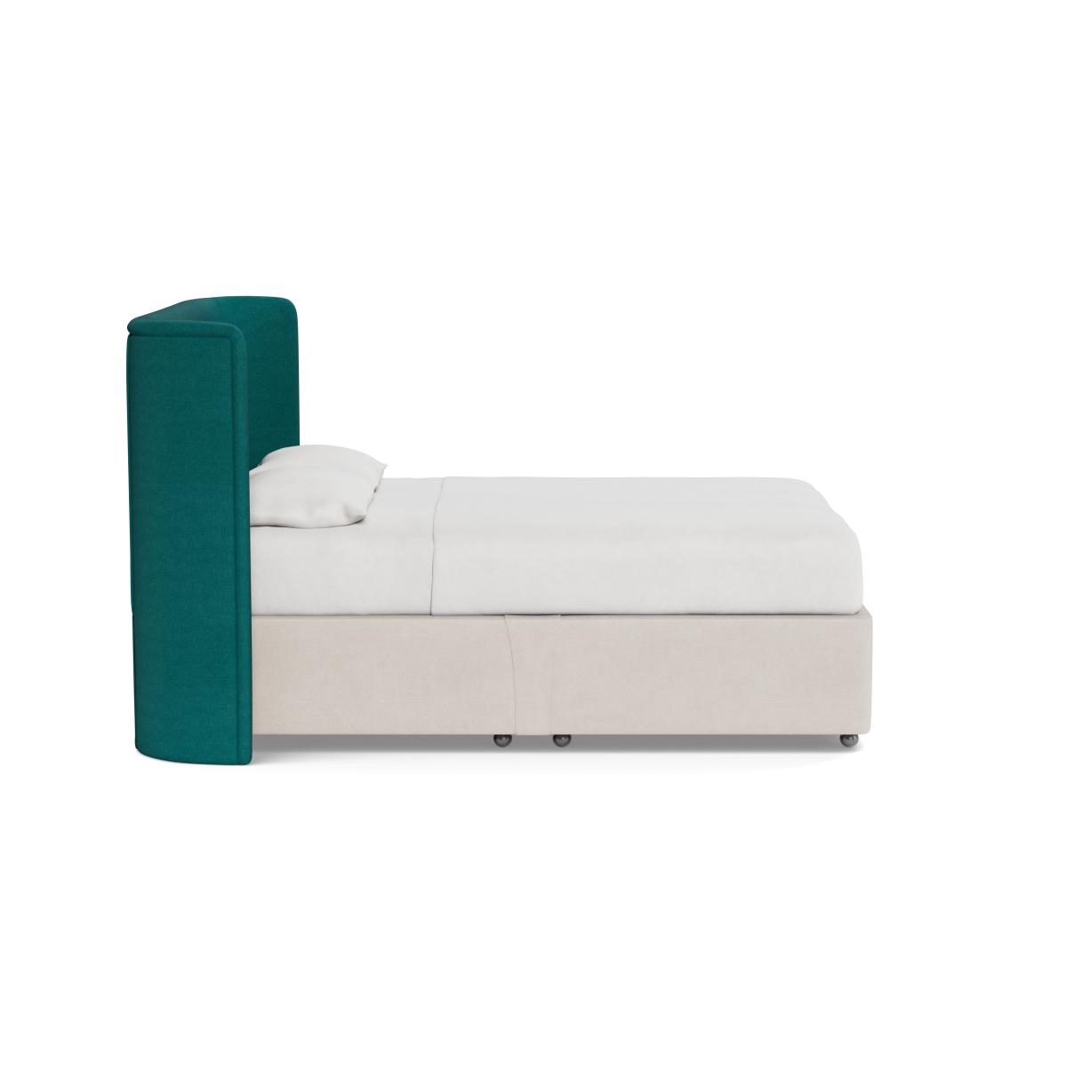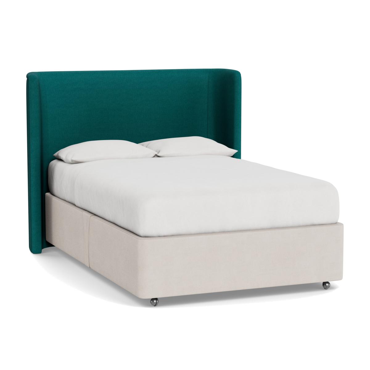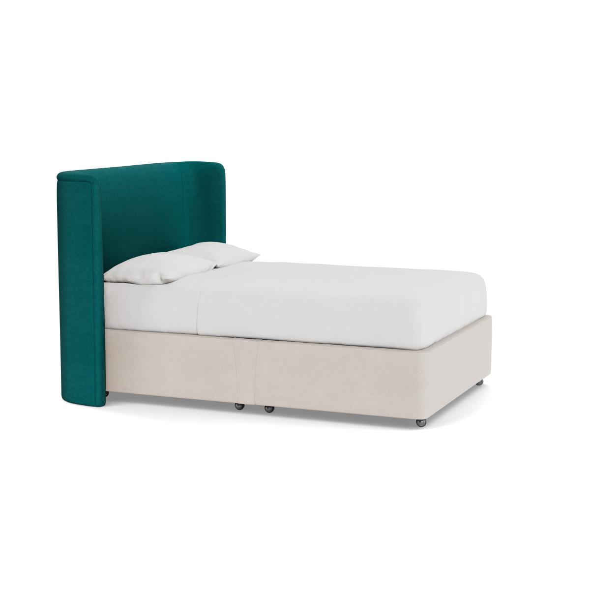 The new Monroe headboard effortlessly mixes generous proportions with feminine, sweeping lines. As well as creating a sense of scale and drama, the statement winged design creates a cocoon-like feel for a restful sleep. Produced in the UK, the Monroe headboard, featured here in an understated rustic linen, is available in all Heal's fabrics. Sitting upon a Heal's divan base in the same premium upholstery, this bed is perfect for your own creative escape.