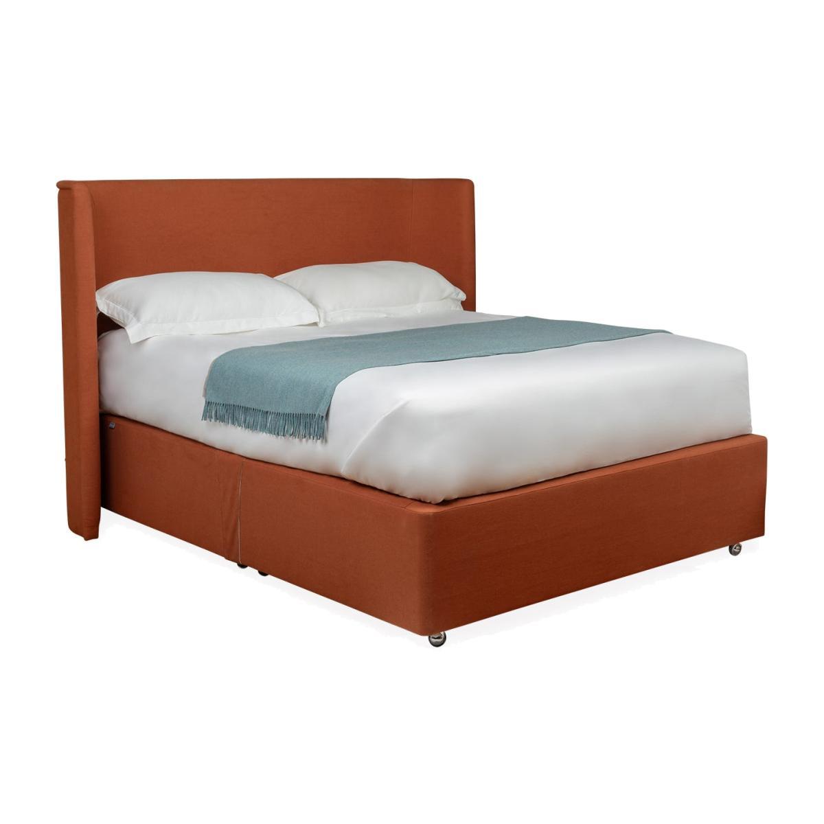 The new Monroe headboard effortlessly mixes generous proportions with feminine, sweeping lines. As well as creating a sense of scale and drama, the statement winged design creates a cocoon-like feel for a restful sleep. Produced in the UK, the Monroe headboard, featured here in an understated rustic linen, is available in all Heal's fabrics. Sitting upon a Heal's divan base in the same premium upholstery, this bed is perfect for your own creative escape.