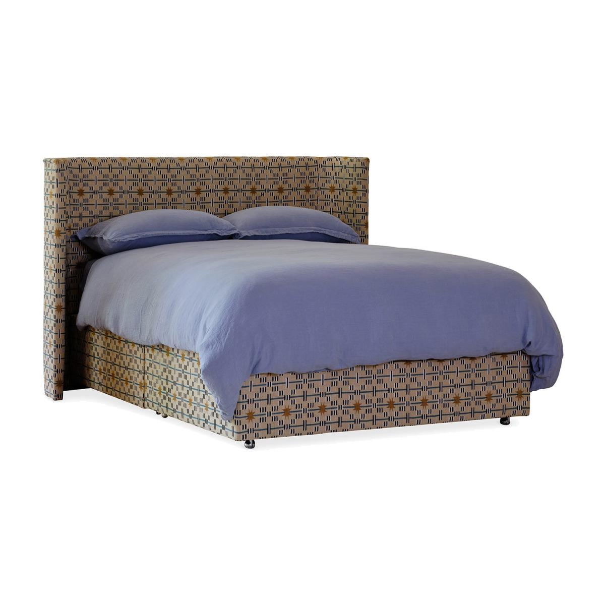 The Monroe Headboard is refreshed in Afua Walnut, layering soft geometry and cultural storytelling into a bold yet versatile finish. Created by Yarn Collective, the fabric, inspired by traditional Kente motifs, weaves meaning and modernity through bold form and refined composition. A statement piece that complements soft bedding with graphic interest and timeless cultural roots. The Monroe Headboard effortlessly mixes generous proportions with feminine, sweeping lines. As well as creating a sense of scale and drama, the statement winged design creates a cocoon-like feel for a restful sleep.