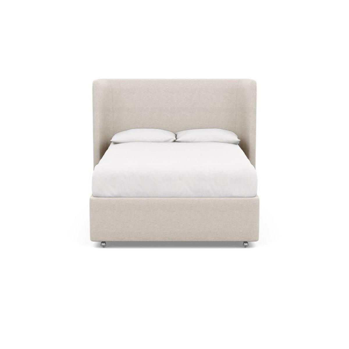 The new Monroe headboard effortlessly mixes generous proportions with feminine, sweeping lines. As well as creating a sense of scale and drama, the statement winged design creates a cocoon-like feel for a restful sleep. Produced in the UK, the Monroe headboard, featured here in an understated rustic linen, is available in all Heal's fabrics. Sitting upon a Heal's divan base in the same premium upholstery, this bed is perfect for your own creative escape.