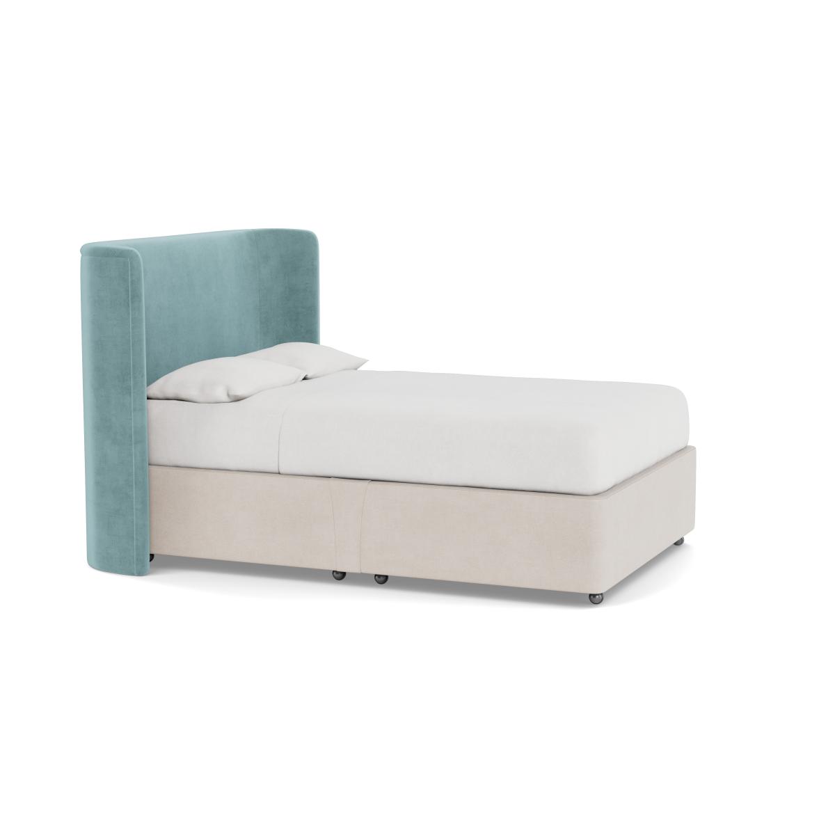 The new Monroe headboard effortlessly mixes generous proportions with feminine, sweeping lines. As well as creating a sense of scale and drama, the statement winged design creates a cocoon-like feel for a restful sleep. Produced in the UK, the Monroe headboard, featured here in an understated rustic linen, is available in all Heal's fabrics. Sitting upon a Heal's divan base in the same premium upholstery, this bed is perfect for your own creative escape.