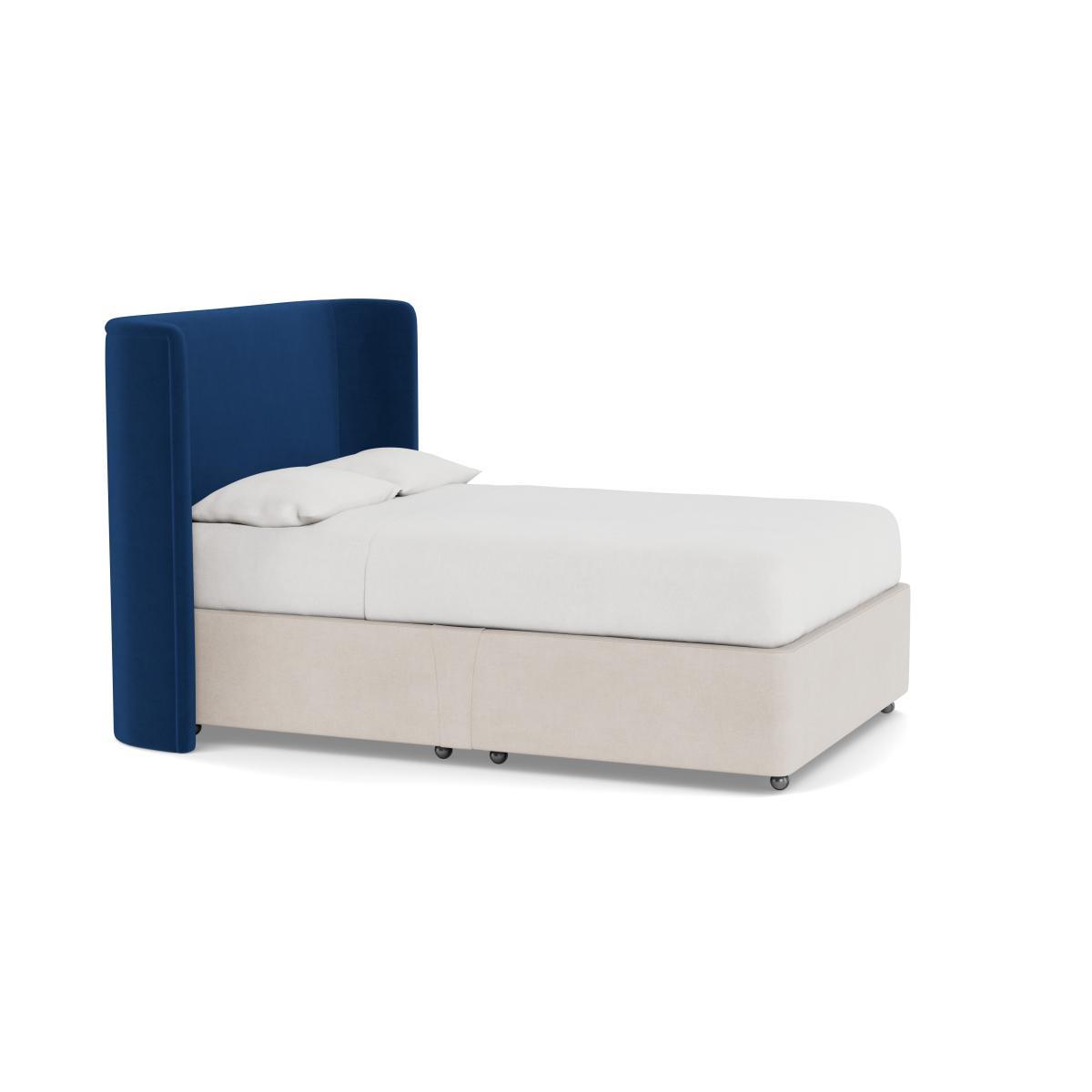 The new Monroe headboard effortlessly mixes generous proportions with feminine, sweeping lines. As well as creating a sense of scale and drama, the statement winged design creates a cocoon-like feel for a restful sleep. Produced in the UK, the Monroe headboard, featured here in an understated rustic linen, is available in all Heal's fabrics. Sitting upon a Heal's divan base in the same premium upholstery, this bed is perfect for your own creative escape.