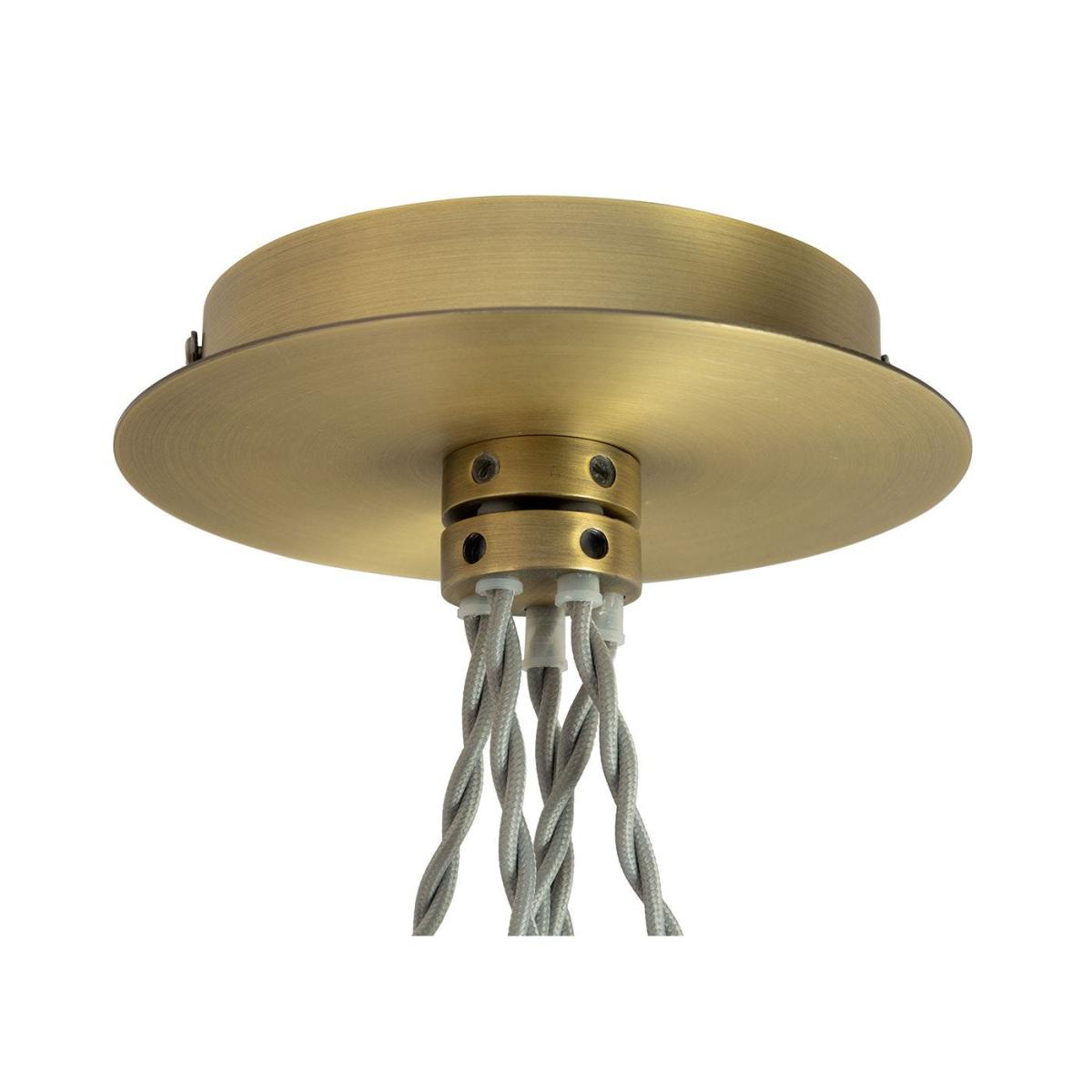 Drawing inspiration from Marilyn Monroe's famously billowing skirt, the Monroe Porcelain 5 Light Chandelier Pendant offers a modern twist on classic elegance. Each porcelain shades can be height ajusted and emit a soft, warm light, creating a cosy atmosphere The chandelier is adorned with brushed satin brass effect metal components and pale grey fabric-covered twisted cables, making it a stunning focal point for any interior.