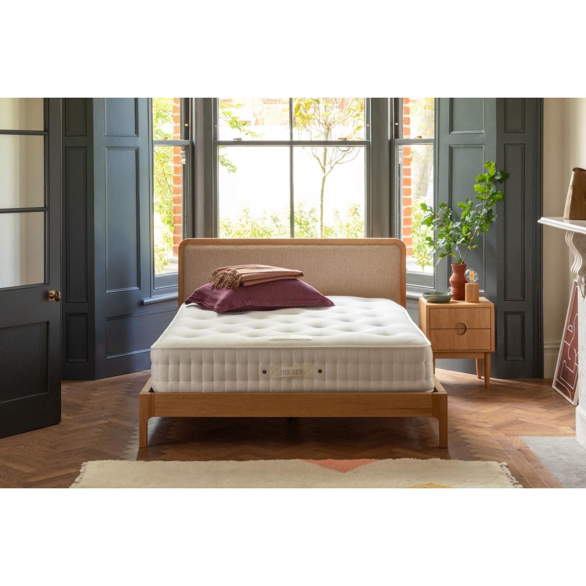 Available in a choice of soft, medium or firm tension, The Latex Pocket 1500 mattress features thousands of traditional honeycomb nested pocket springs that offer independent support for each sleeper and minimises rolling together.<p> The pocket springs are covered with a layer of coir fibre on each side with multiple layers of bonded white cotton and a double sided layer of responsive latex. Finished with two rows of genuine hand side stitching, a Heals Knitted Tencel cover and hand tufted with wool tufts.<p> A wonder material whose elastic properties allow sleepers to easily roll from side to side preventing disruption of natural sleep patterns, latex is effective at keeping cool in warm temperatures and preventing dust mites from thriving.<p> All of the sumptuous fillings are held together with traditional hand tufting as well as two rows of hand side stitching complete with solid nickel ventilators to add breathability and prevent uncomfortable build-ups of moisture.