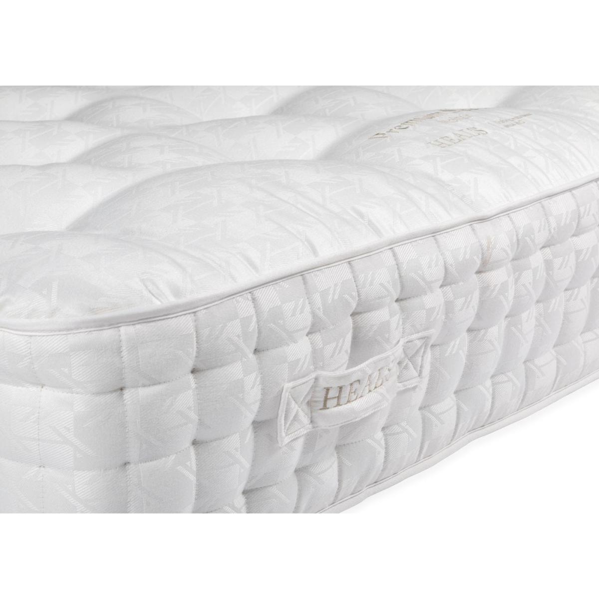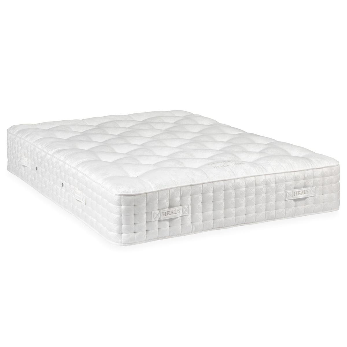 Handmade in the UK exclusively for Heal's, at the centre of the Premium Sleep Silk Mattress sits 3000 pocket springs each of which has been hand sewn and nested into a honeycomb structure to move independently from one another responding to the natural contours of the body and movements during the night. The springs are then topped with a luxurious cashmere and silk pad, which helps to equalize temperature, as well as hand-teased mohair and merino wool for a supportive yet soft feel. On top of these rest breathable layers of lambswool and cotton, which help wick away moisture from the body during the night as well as regulate body temperature for a fresh night's sleep all year round. Available in a choice of soft, medium or firm tension, the Premium Sleep Silk mattress is filled, tufted and stitched entirely by hand with Heal's ticking providing the finishing touch. Hand filled, tufted and stitched in Britain, the Premium Sleep Silk Mattress features 3000 honeycomb nested pocket springs encased within layers of hand-teased mohair, merino wool and a cashmere and silk pad. Available in a choice of three tensions, this mattress is topped with the finest natural fillings each of which are chosen for its comfort, insulation and breathability.
