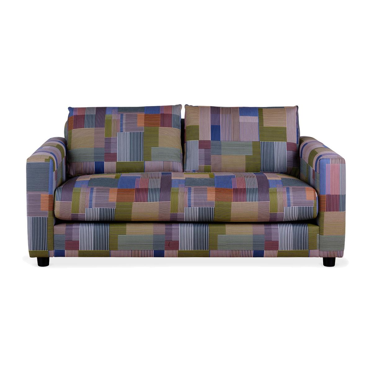 I love the Nimbus II 3-seater for its bold, patchwork fabric that instantly adds personality to any space. It works particularly well in eclectic, modern, or transitional interiors where a statement piece can become the focal point. Practical styling tips include pairing it with neutral walls and minimal accessories to let the fabric stand out, or contrasting it with solid-colour cushions and throws for a more curated look. Its sturdy design and vibrant pattern make it versatile enough to work in both busy family rooms and more sophisticated lounge areas, offering a playful touch without compromising comfort.
