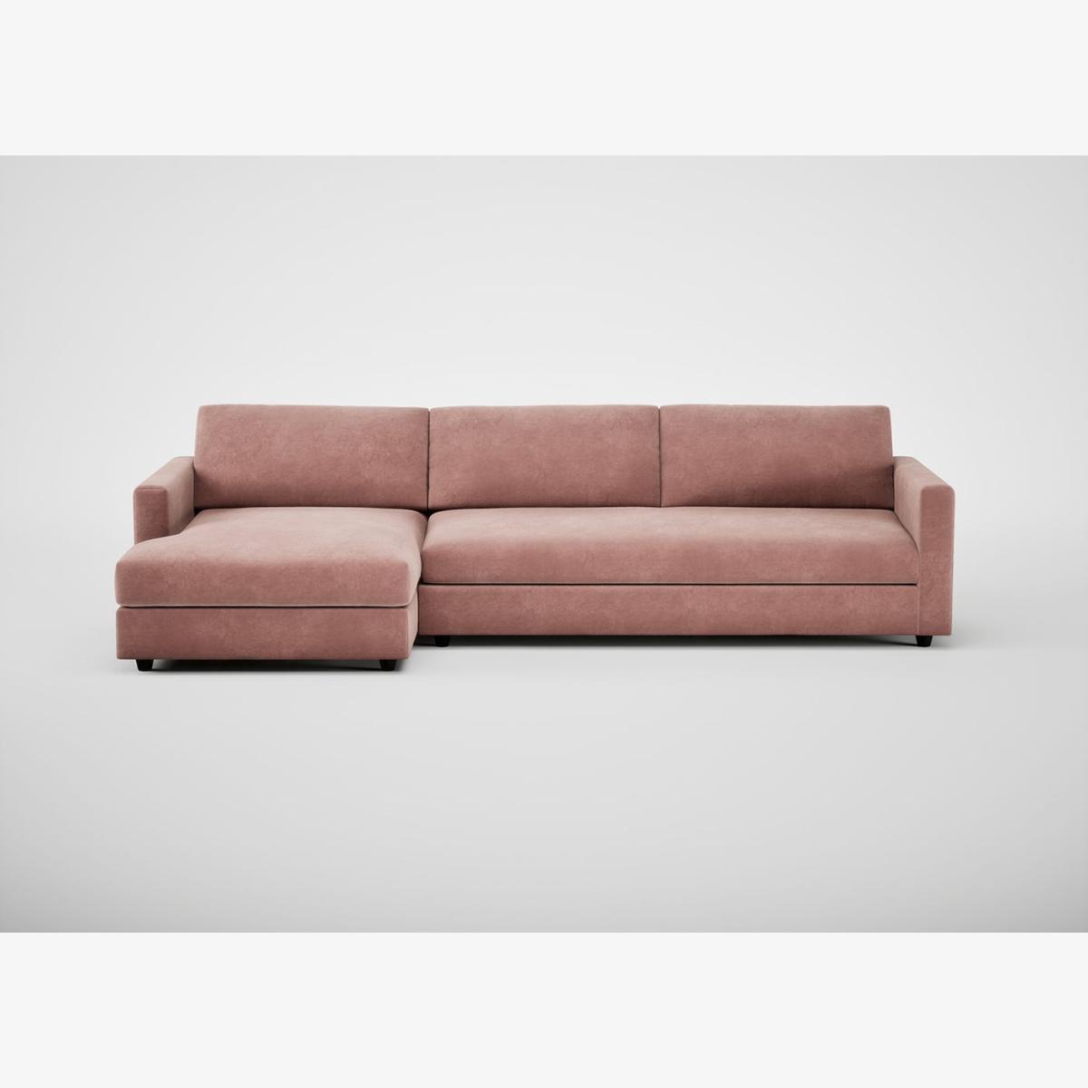 Heal's Nimbus II Chaise Sofa LHF Smart Luxe Velvet Dusky Pink Black Feet