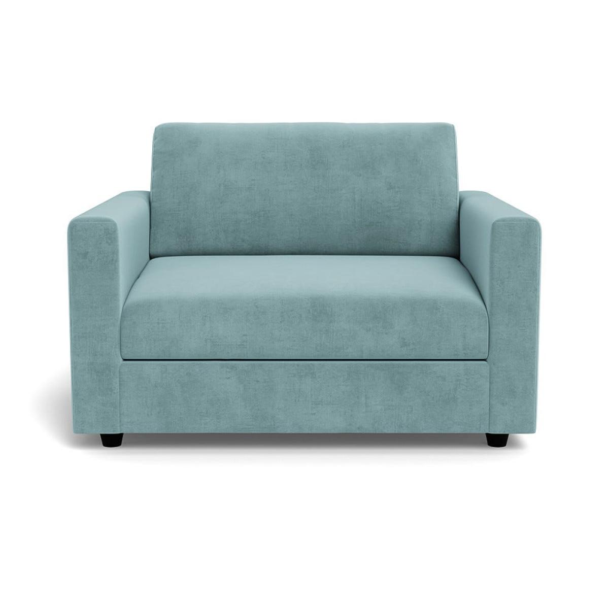 Heal's Nimbus II Loveseat Smart Luxe Velvet Mineral Blue Black Feet