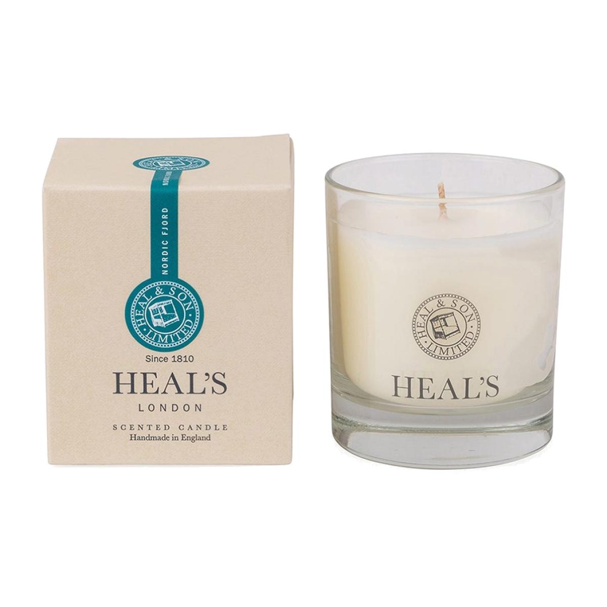 Exclusive to Heal's, the Nordic Fjord Scented Glass Candle blends fresh, citrus tones with earthy cedarwood to create this beautifully balanced scent inspired by the dramatic fjords of Scandinavia. The warming aroma creates a sense of calm with hints of orange blossom and lavender, refreshingly finished off with a touch of sea salt.