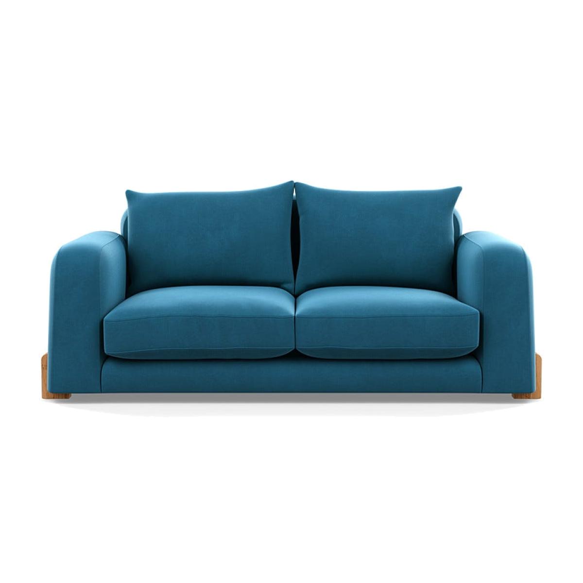 Heal's Nuvola 2 Seater Sofa Smart Velvet Ocean Natural Oak Feet