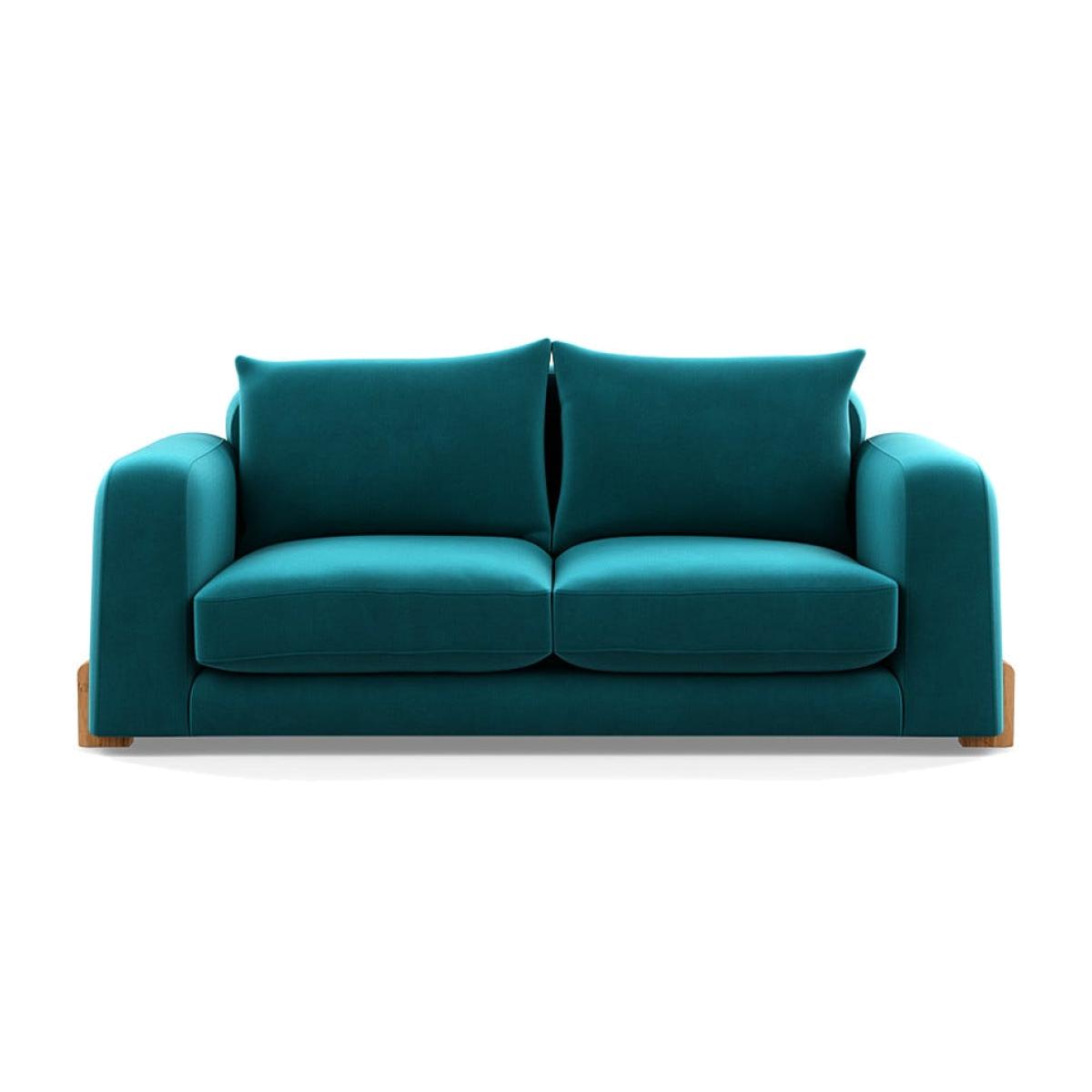 Heal's Nuvola 2 Seater Sofa Smart Velvet Petrol Natural Oak Feet